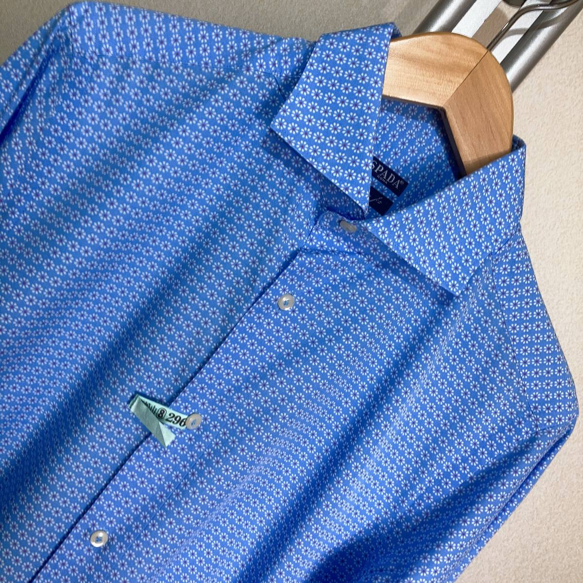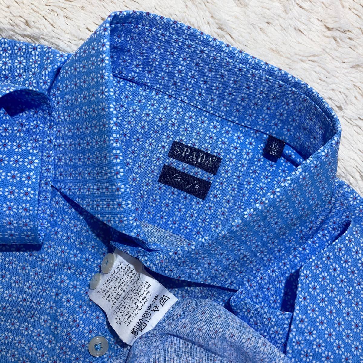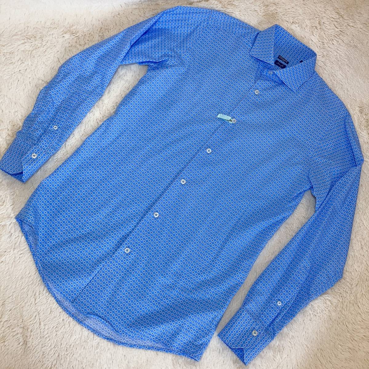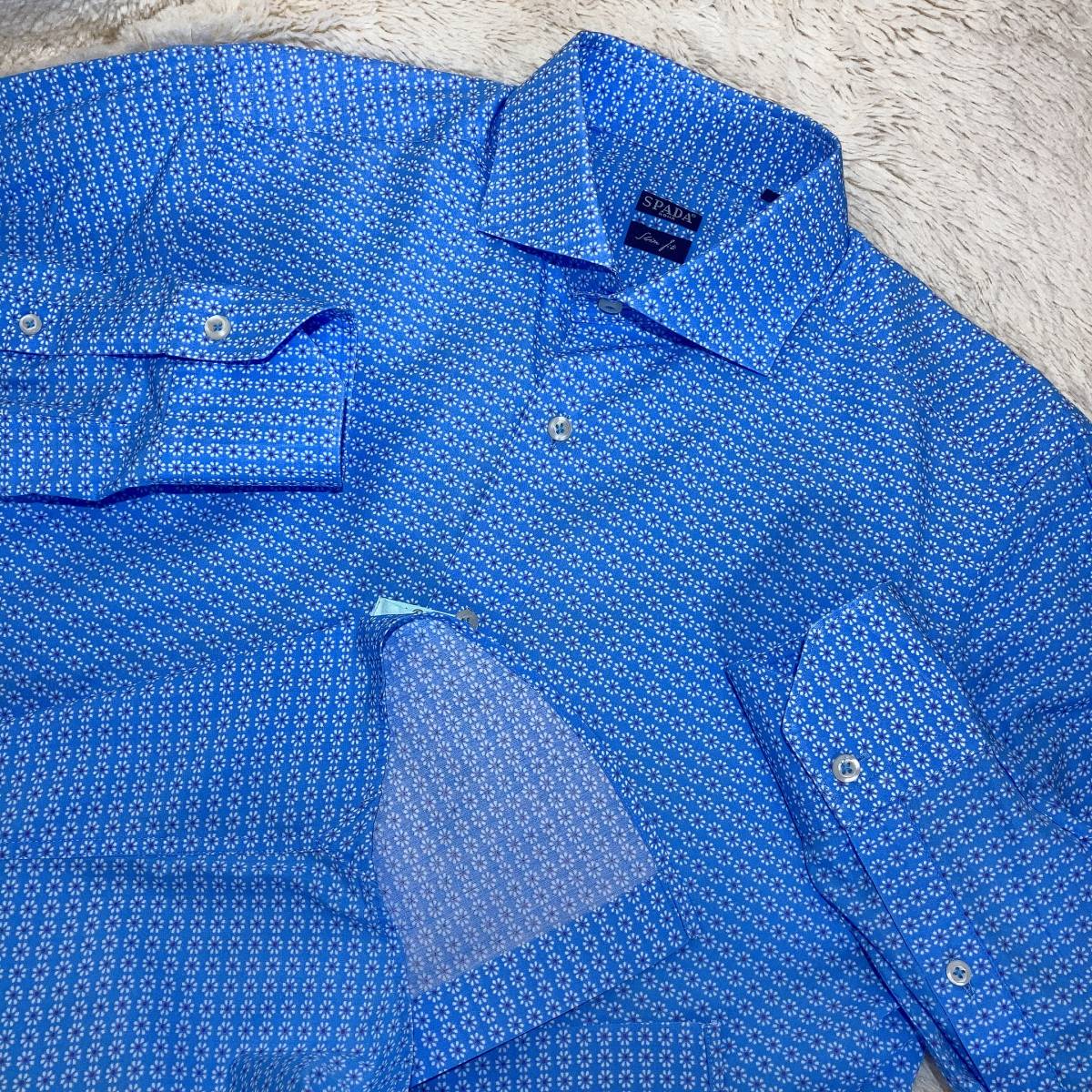 | W504美品!■SPADA ROMAスパーダ★伊製★水色*小柄プリント★長袖シャツ■15 | |||||||||||