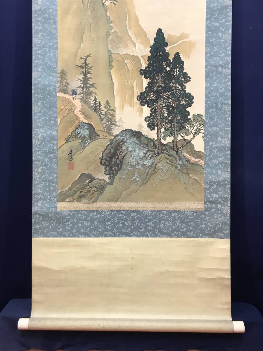 真作/西村秀岳/春山帰路図/山水図/掛軸☆宝船☆AC-326