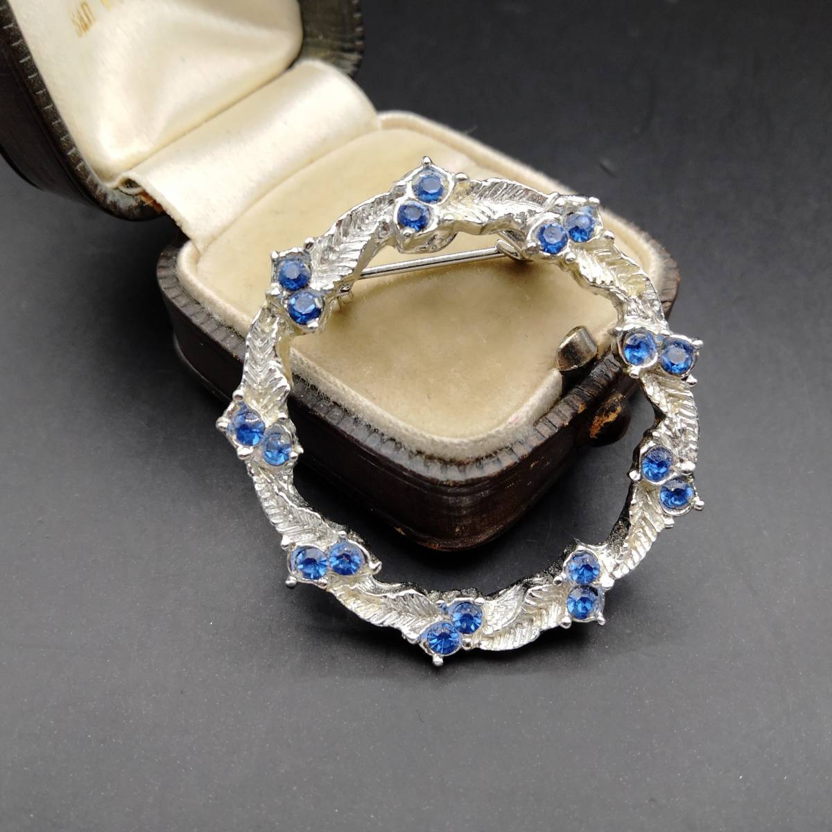 GERRY’S ブルー ストーン リーフ 植物 モチーフ フレーム ビンテージ ブローチ 昭和レトロ コスチューム ジュエリー 輸入 YAR②