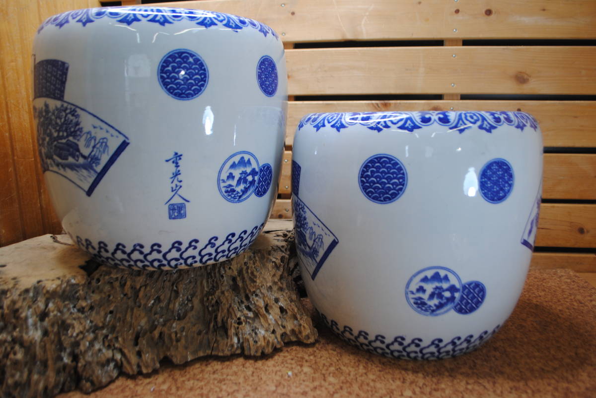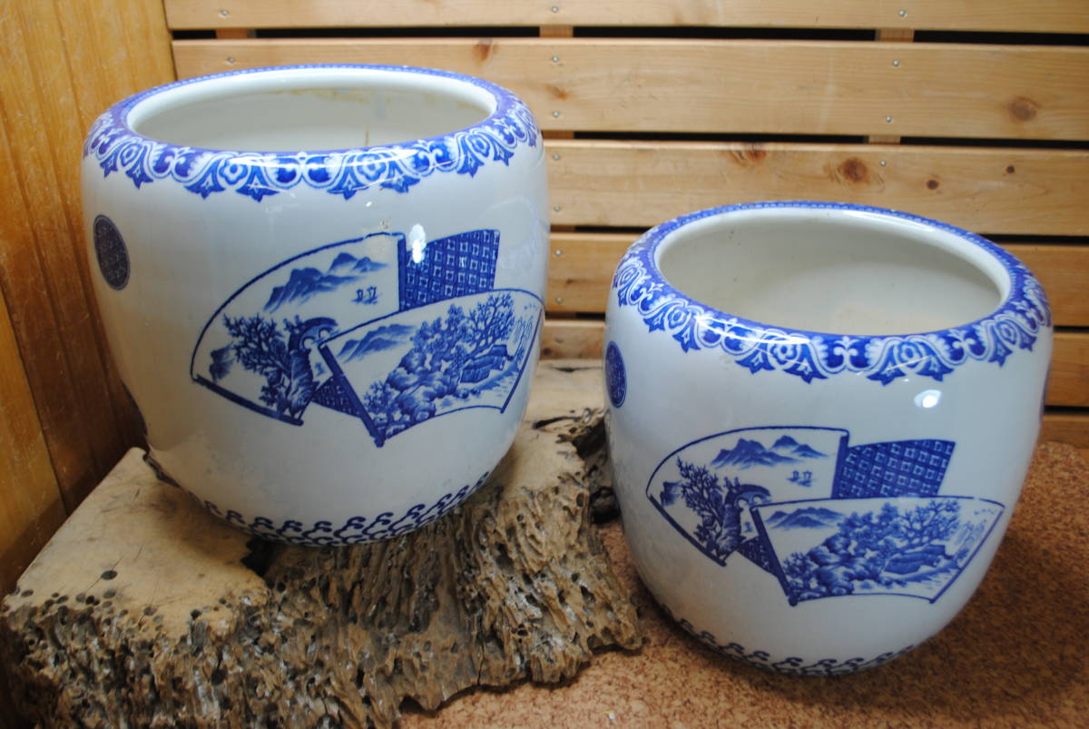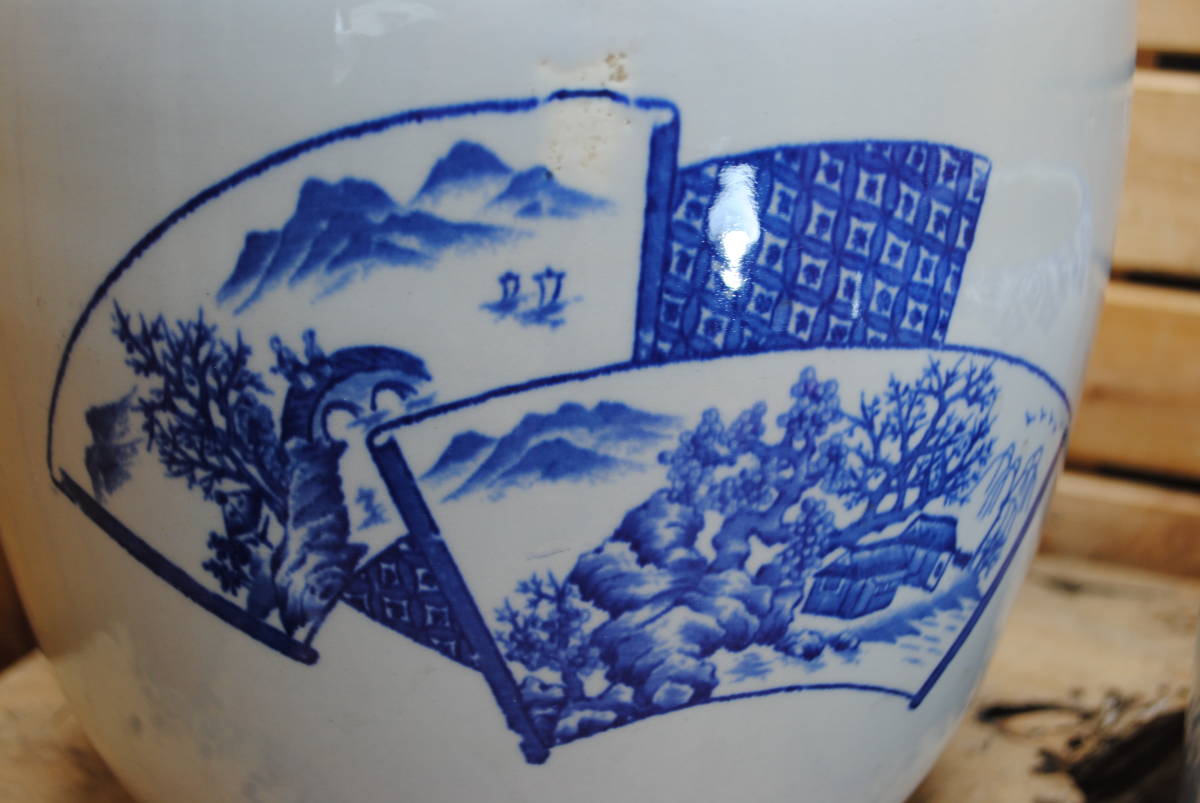 ね116.2点セット◇火鉢◇染付◇ 重光山人◇めだか鉢◇灰道具◇手あぶり◇暖房◇水鉢◇古民具◇古道具◇陶器製◇山水画◇扇