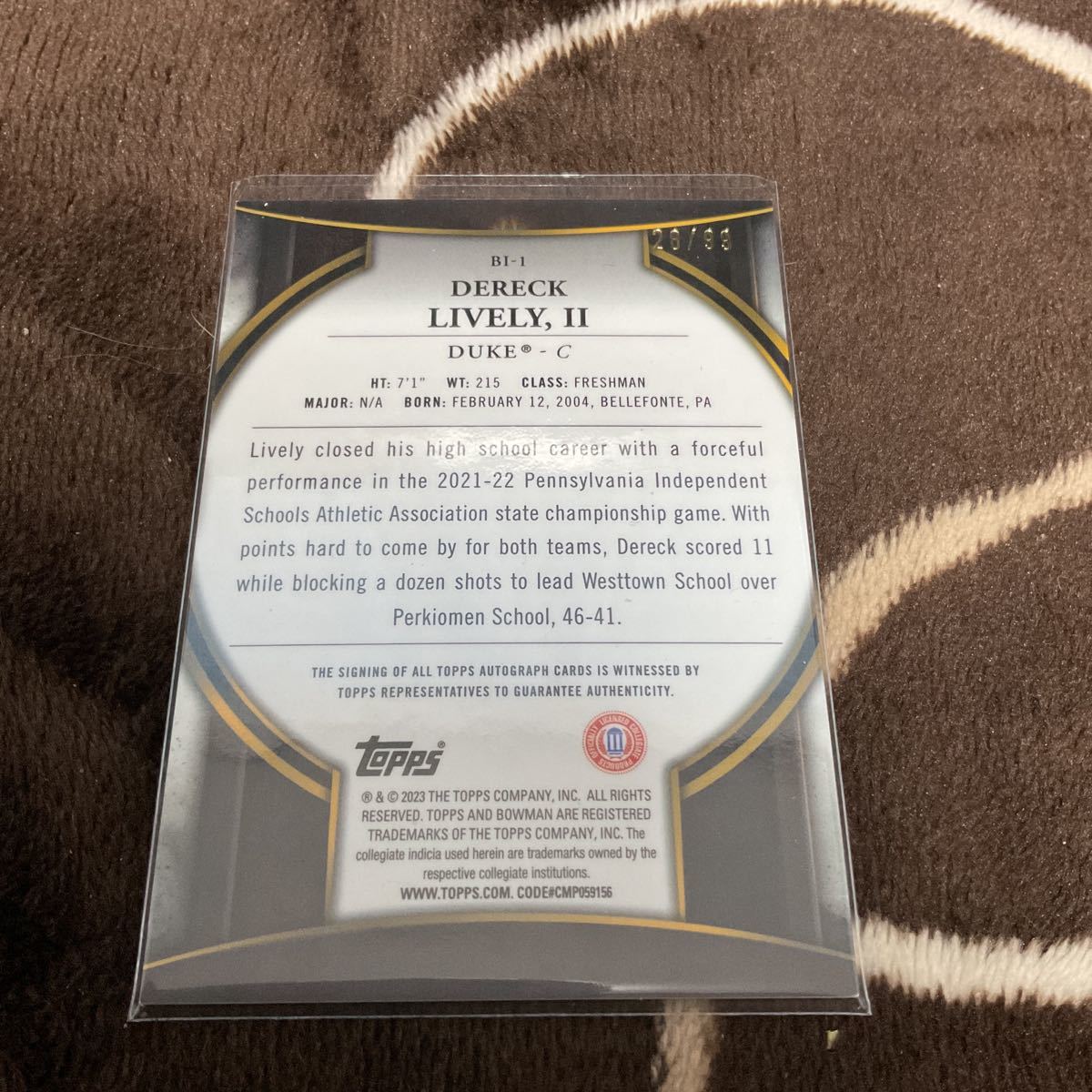 商品名: 2022-23 Bowman Chrome University DERECK LIVELY II インサート サイン Auto NBAドラフト1巡目指名 99枚限定 /99 99シリ