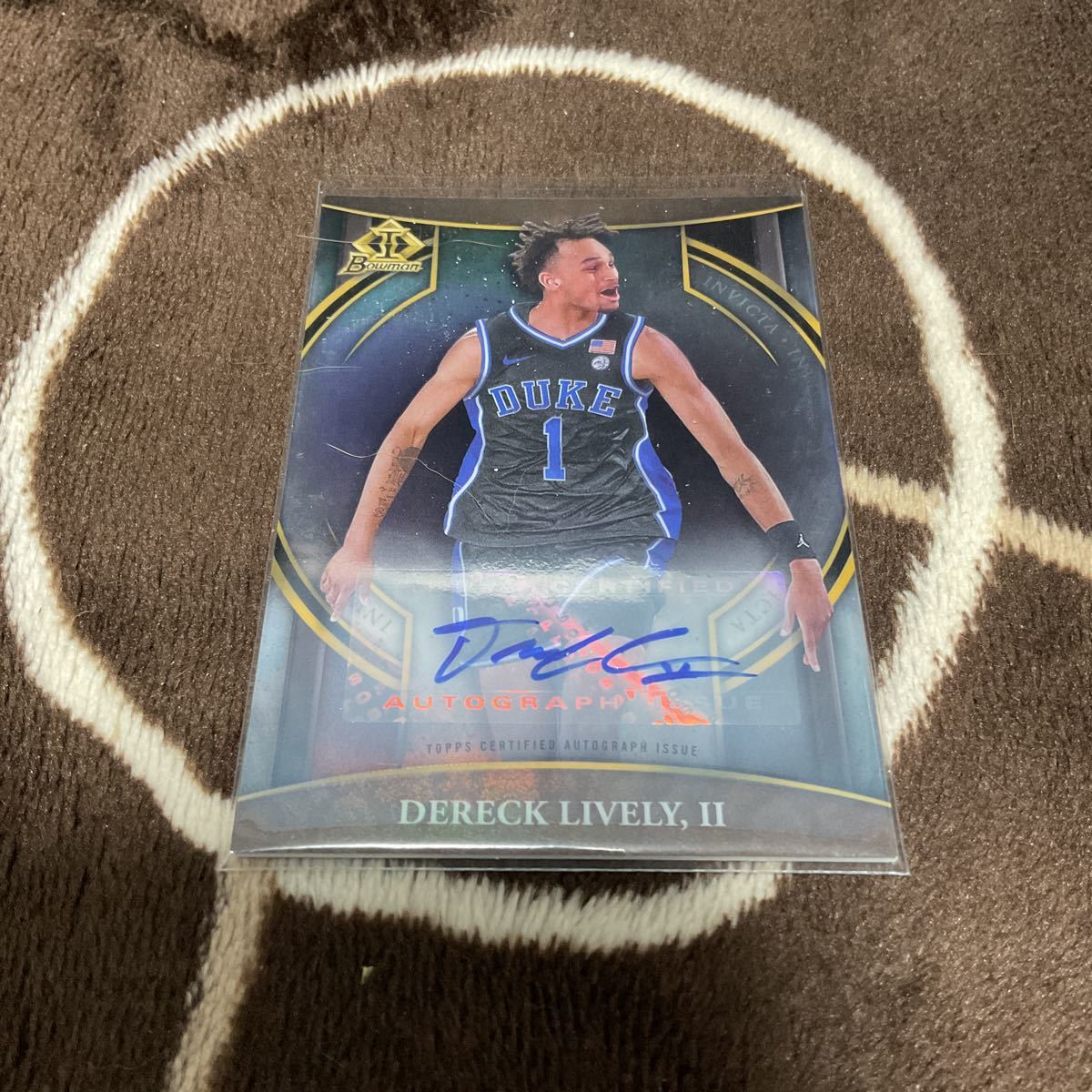 DERECK LIVELY IIは2023年6月22日に実施されたNBAドラフトに見事1巡目指名された将来有望な選手でNBAデビュー前のAutoカード 所謂サインカードとなります。大変貴重なカードで今後の活躍次第では更なる高騰が予想されます。