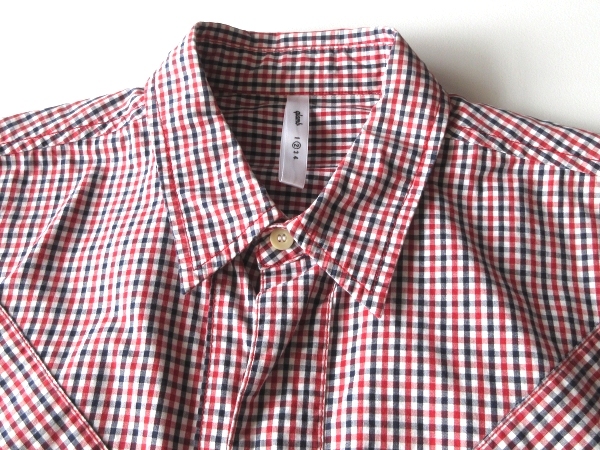 グラムのシャツ。ギンガムチェックのコットン生地を使用しております。フロントは比翼仕様で、ユニオンジャック柄の切替になっております。左裾のミニロゴタブがさりげないアクセントに。上質な素材使いと綺麗なシルエットで、様々なコーディネートにお使い頂ける一着です。
