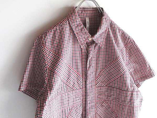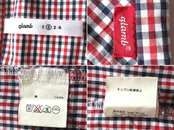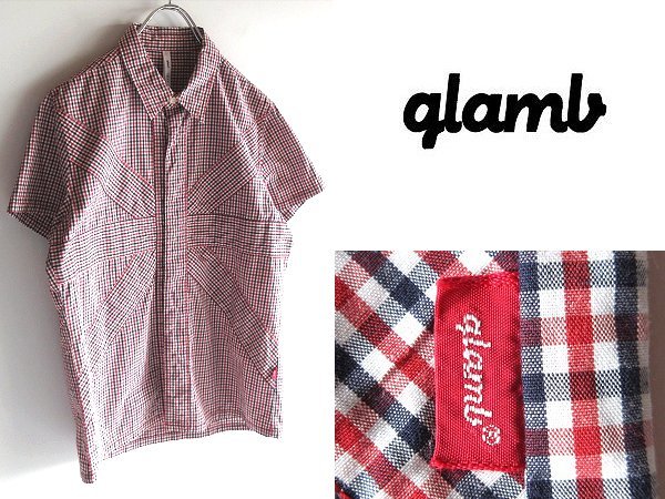名作 glamb グラム ロゴタブ ユニオンジャック切替 パッチワーク ギンガムチェック柄 ボックス コットン 半袖 シャツ 2 日本製 ネコポス可