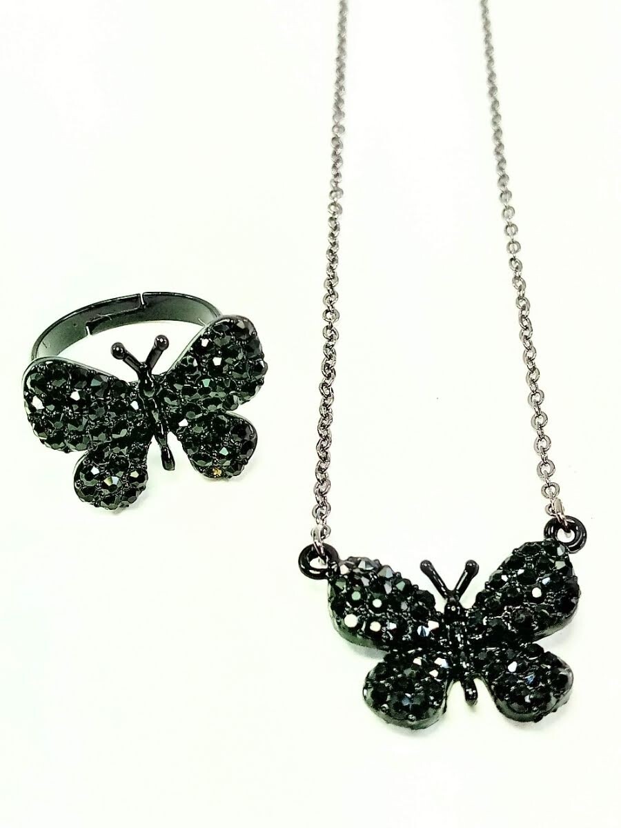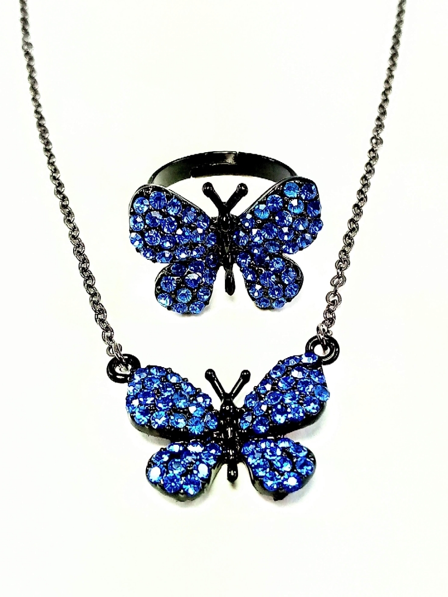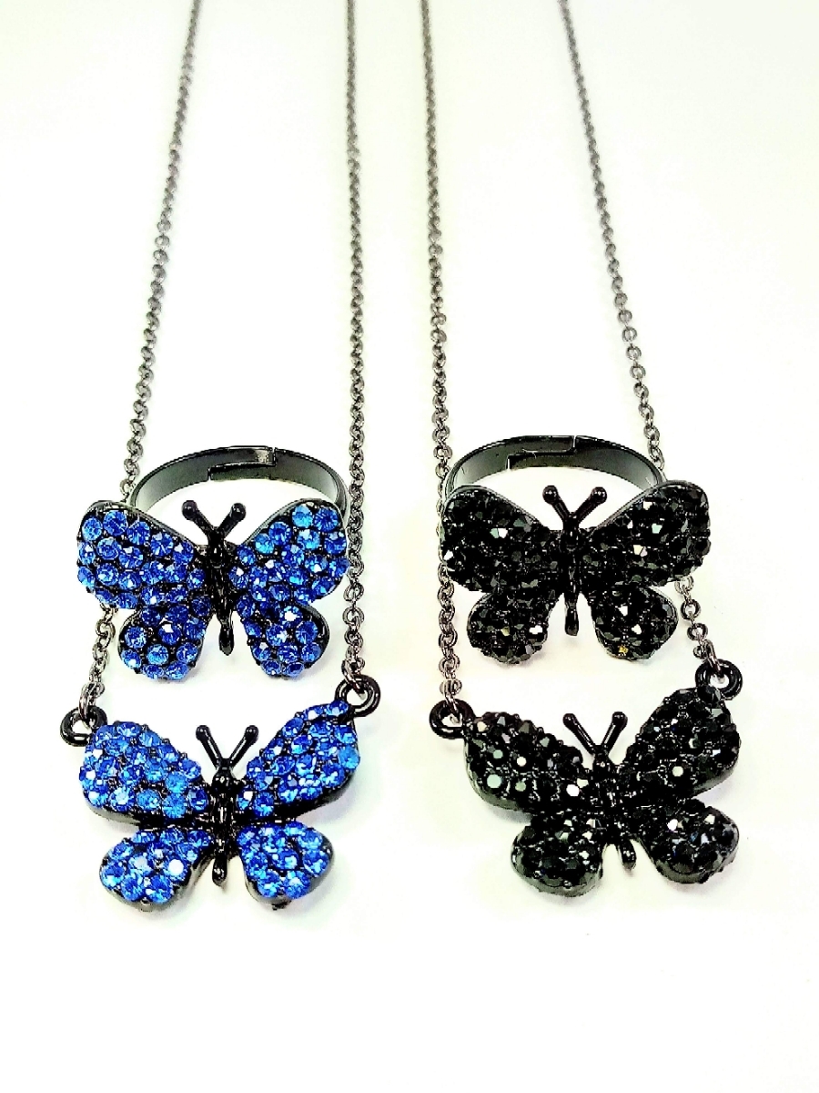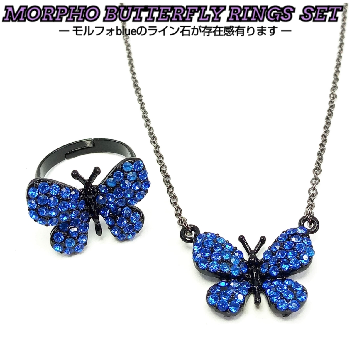 ネックレス リング お得Set モルフォ蝶 ラインストーン【新品未使用】のご紹介です