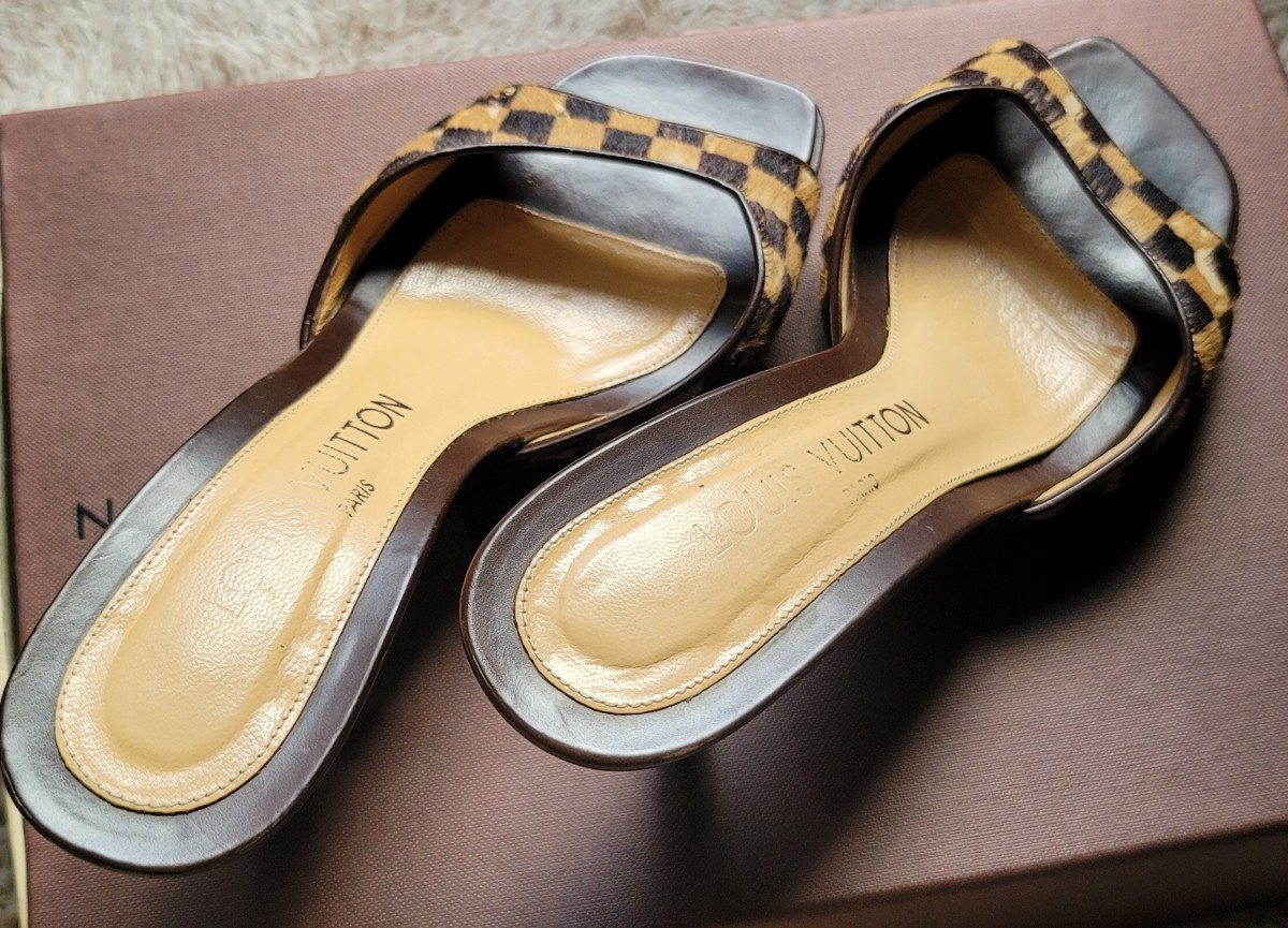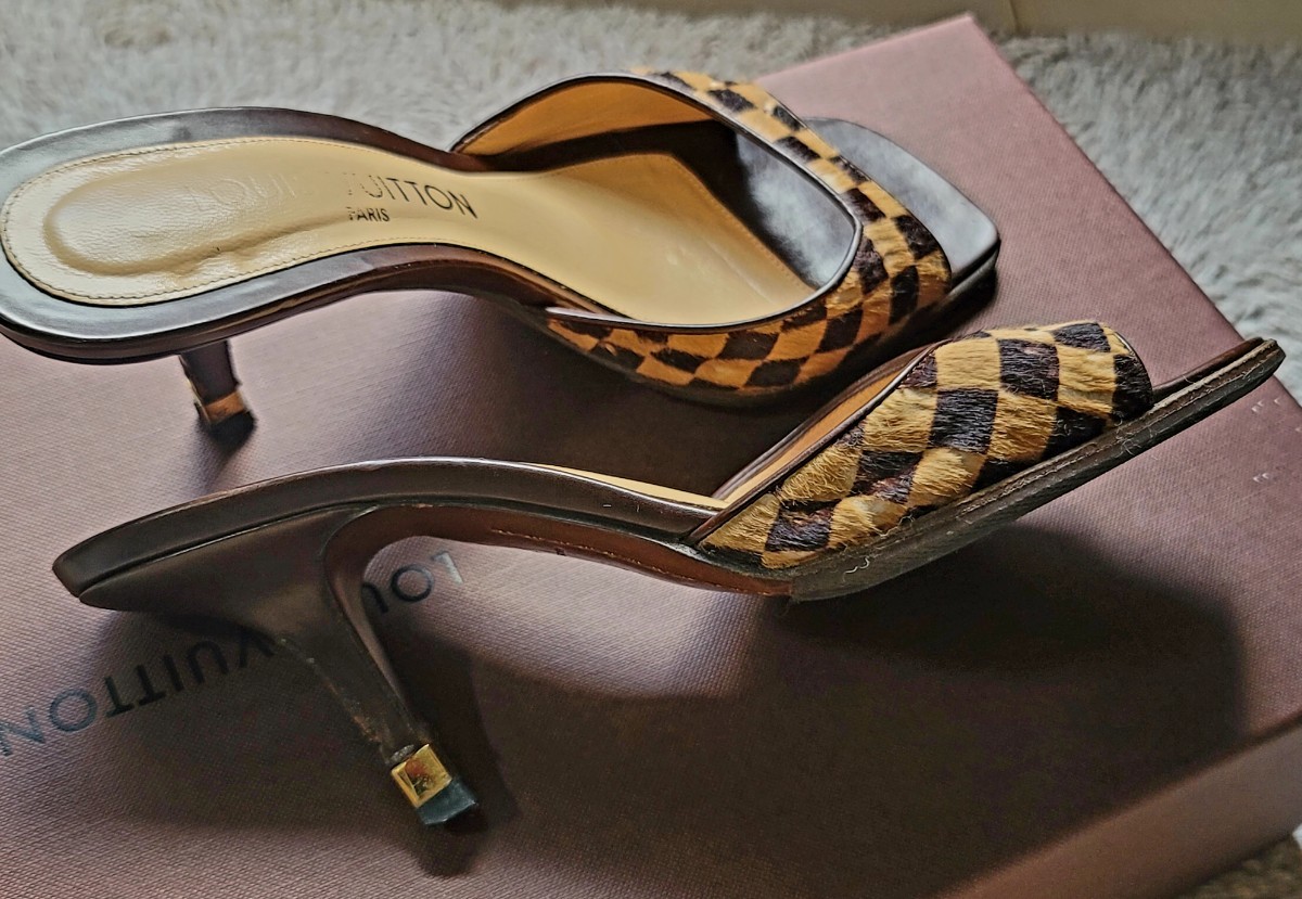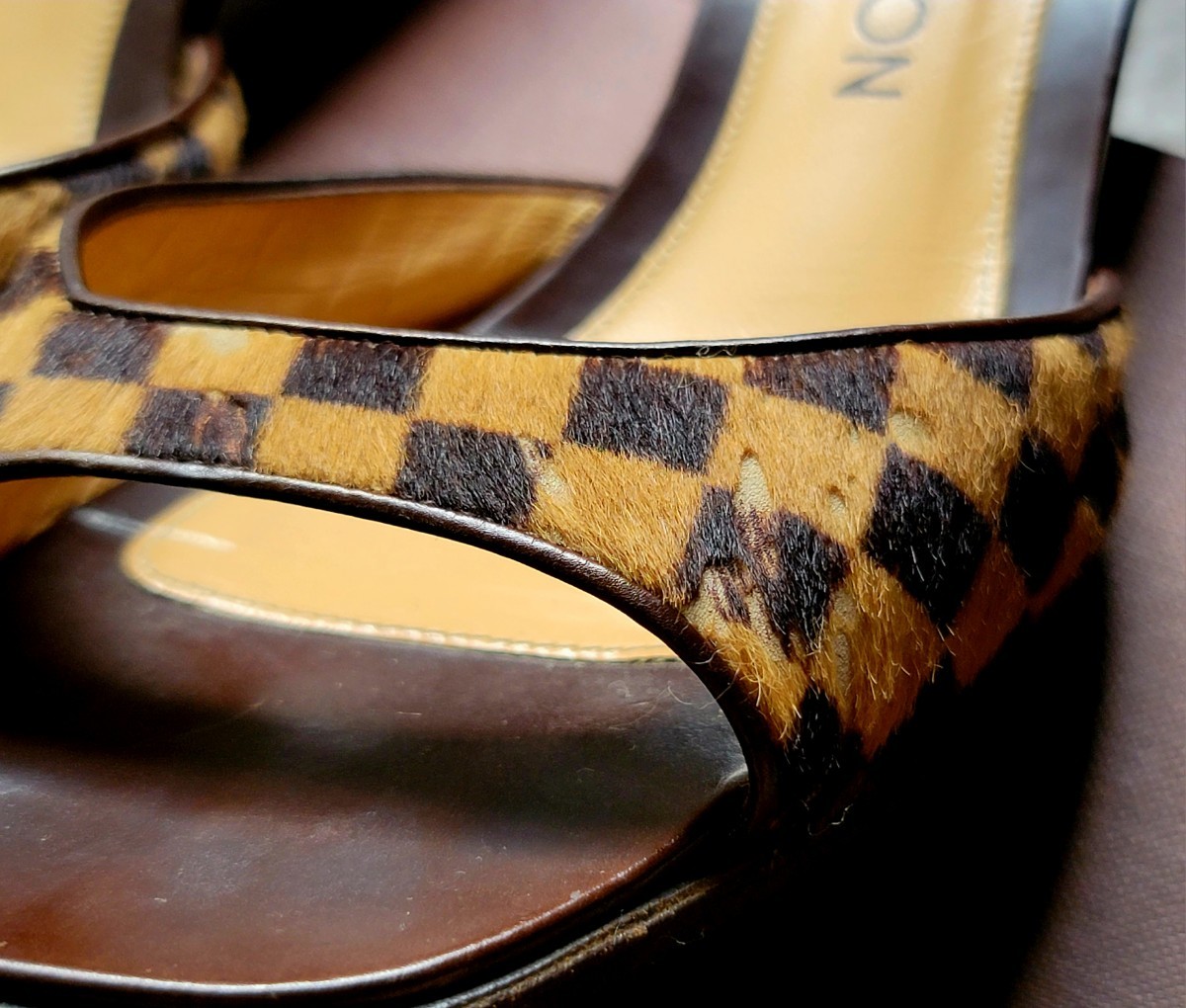 商品状態:ハラコに毛足の剥がれ部分あり、ヒールに傷あり。画像参照ください。