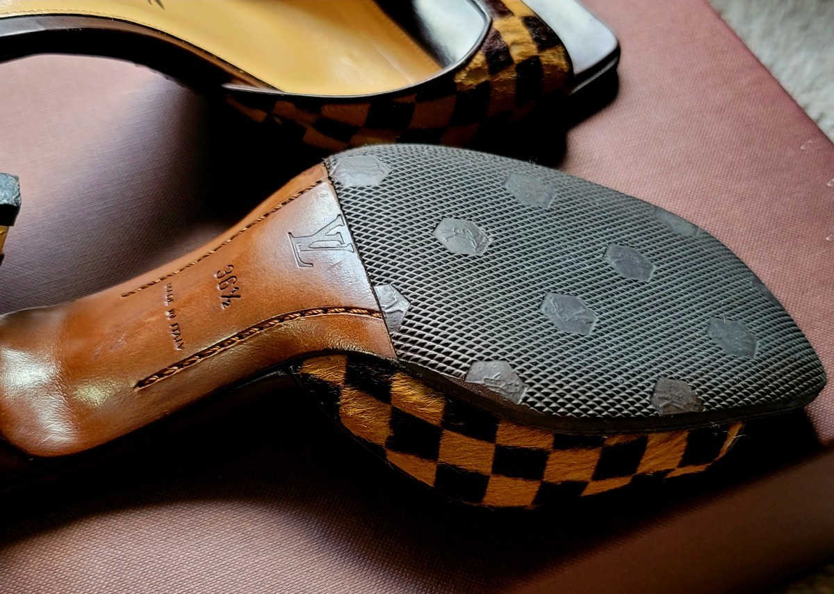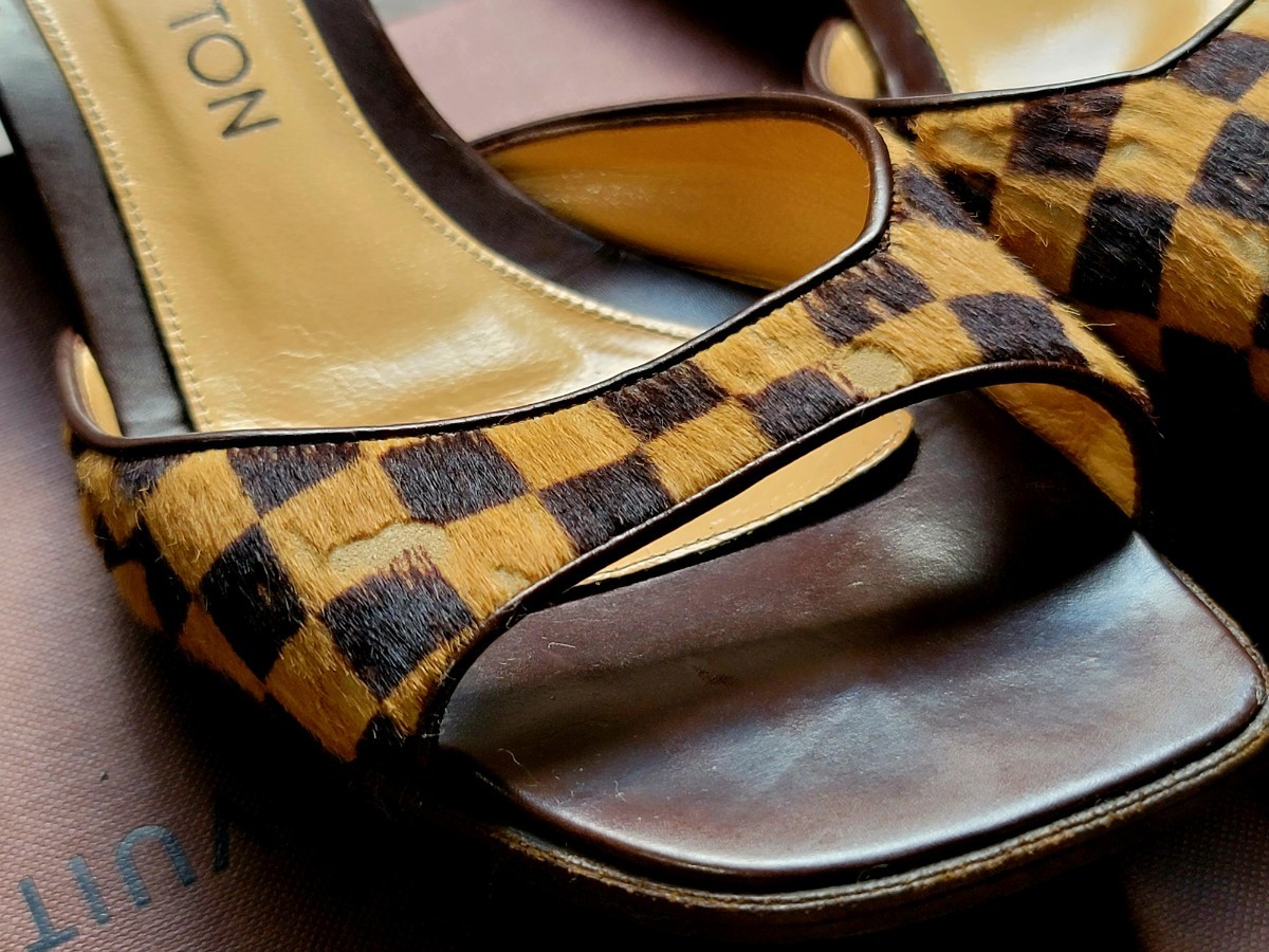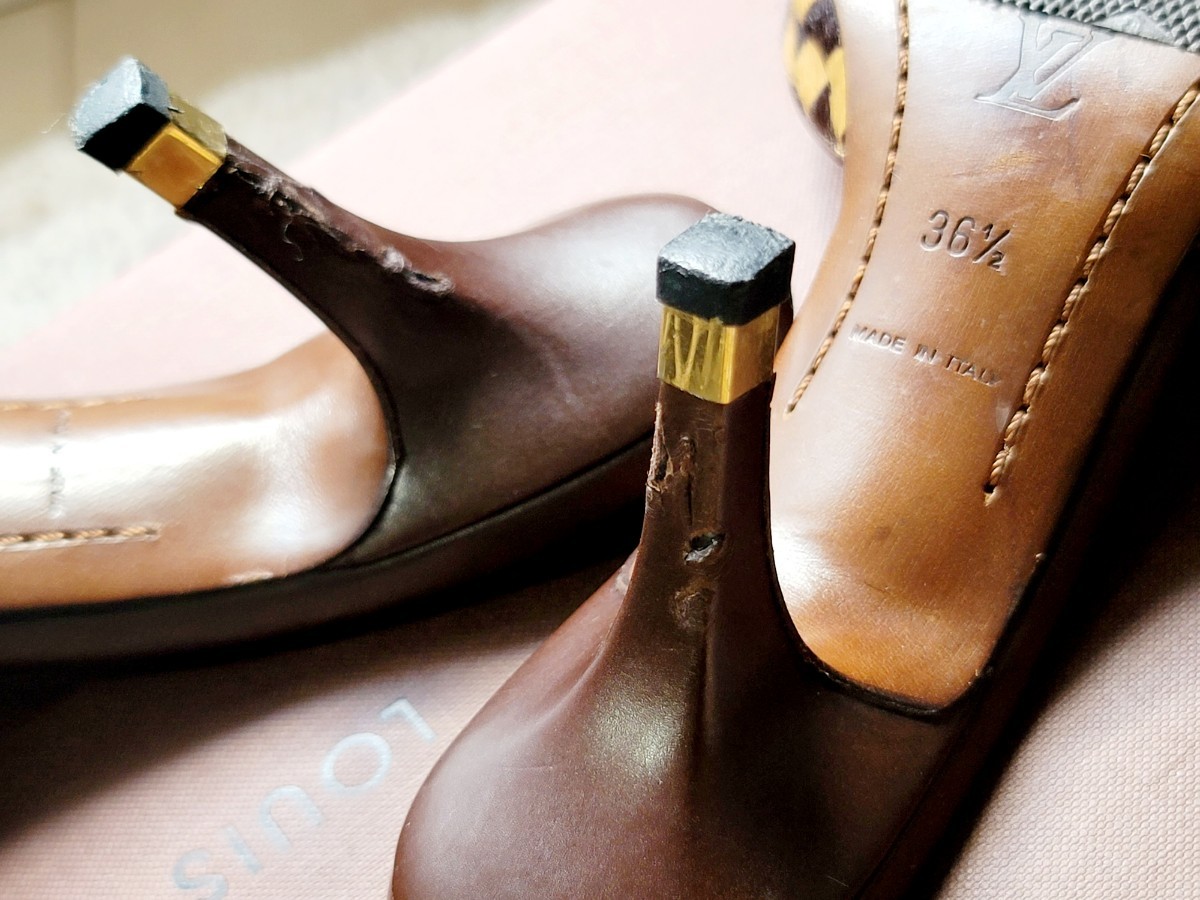 商品状態:ハラコに毛足の剥がれ部分あり、ヒールに傷あり。画像参照ください。