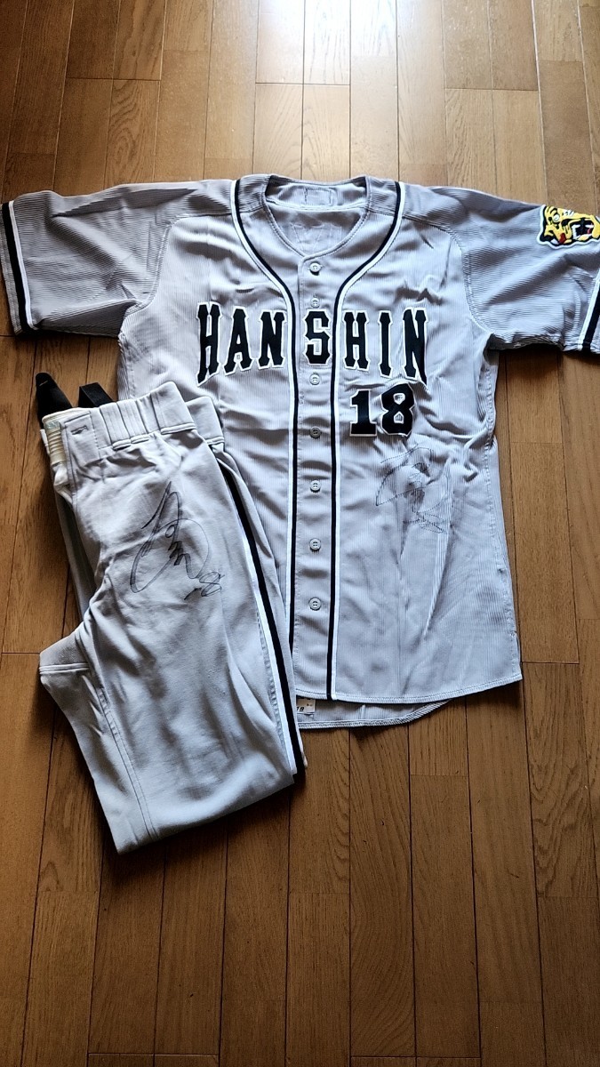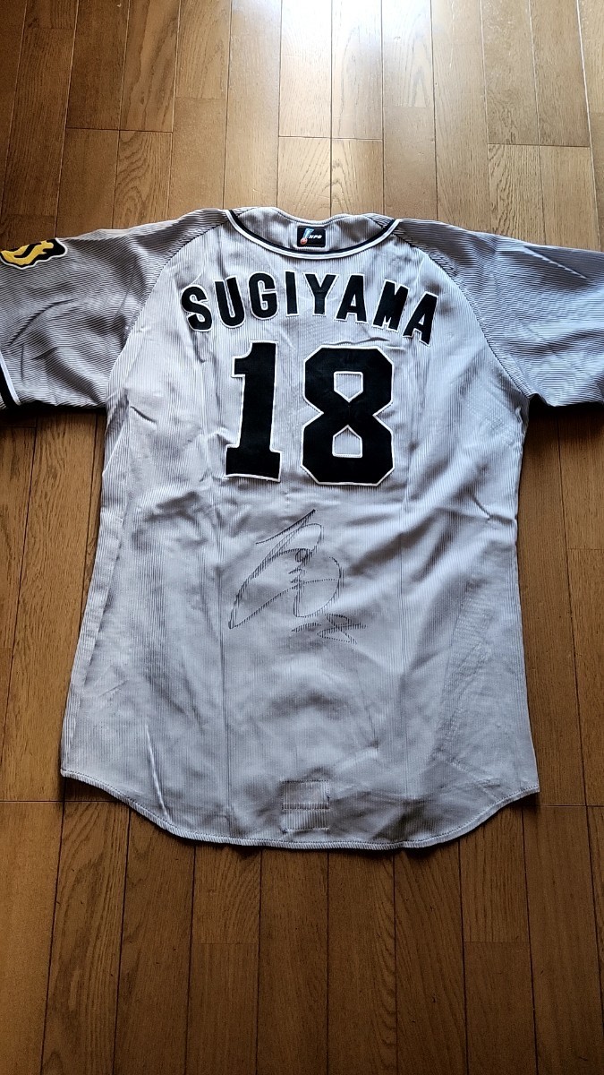 阪神タイガース 18杉山直久 2001年実使用 直筆サイン入りビジターユニフォーム上下です。
