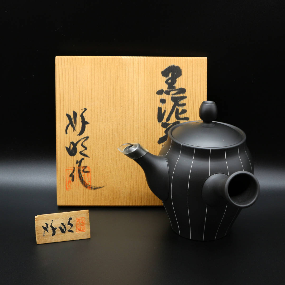 柴田好明 / 急須 / 常滑焼 / モダン / 黒泥 / 茶注 / 煎茶道具 / 茶器 / 茶道具 / 茶壺 / 陶磁器 / 作家もの / 共箱 でございます。