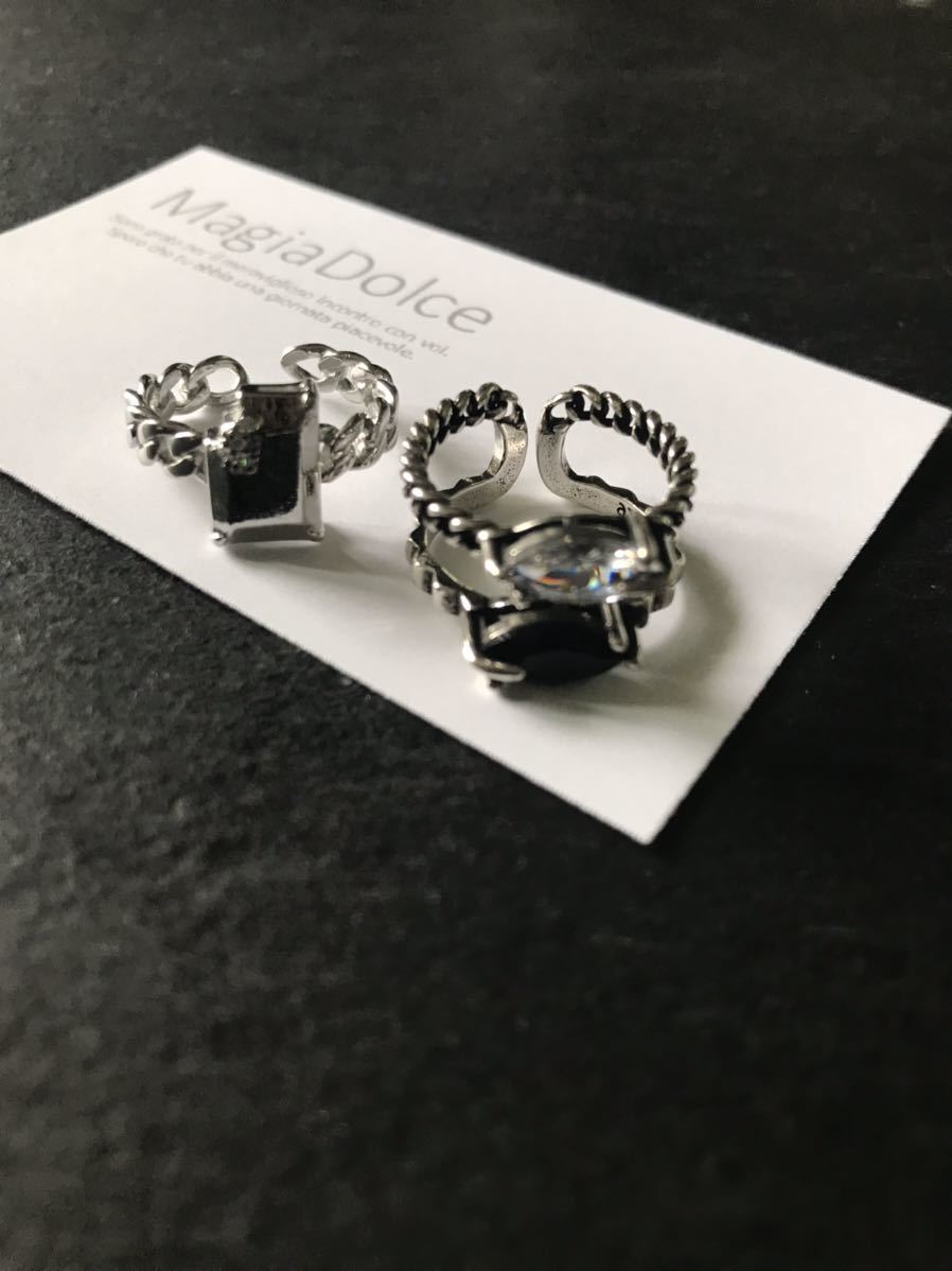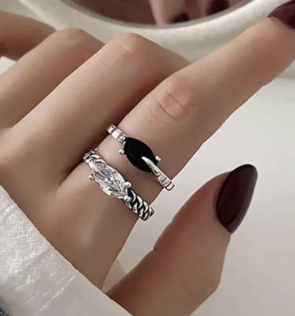 blackとclearのストーンの2連リング