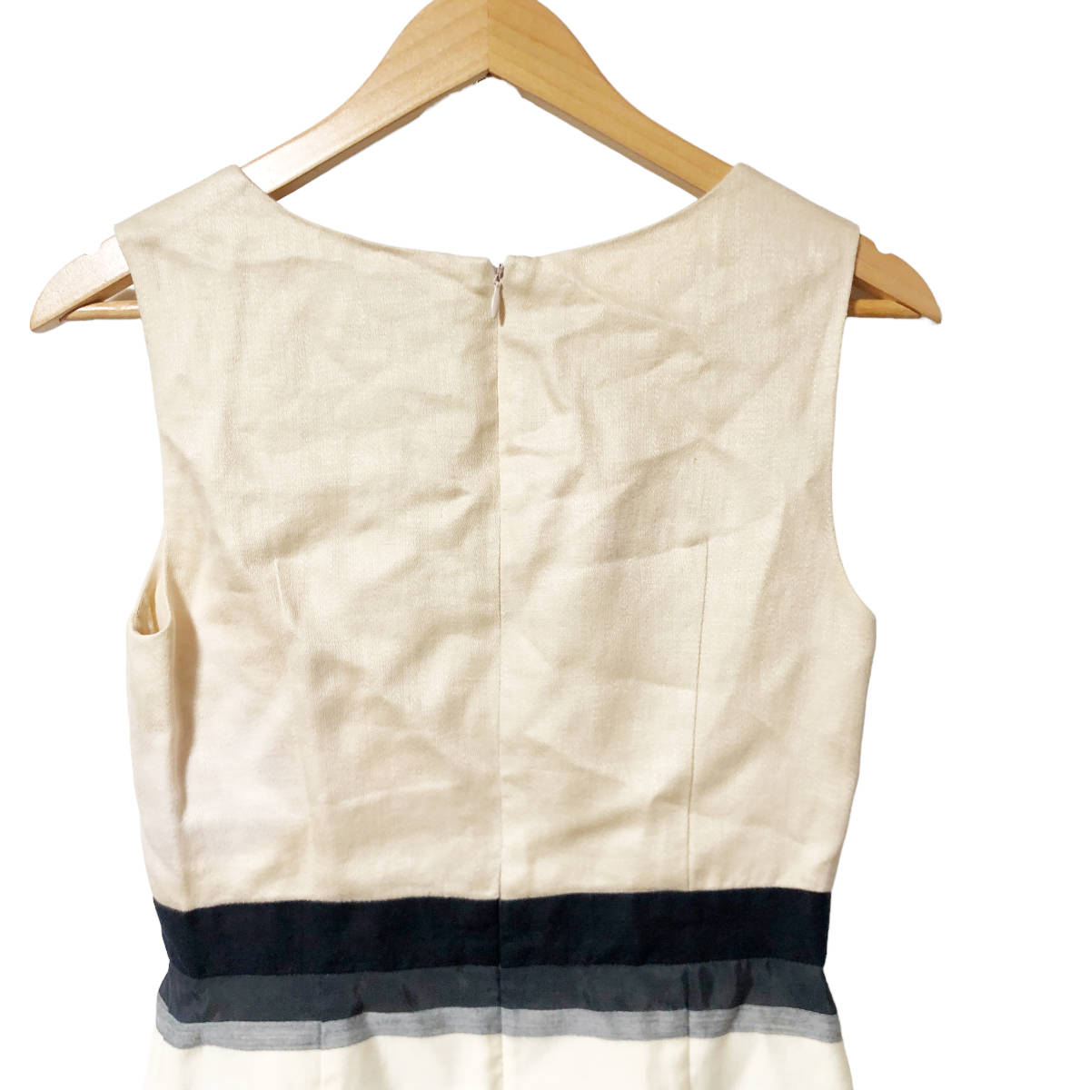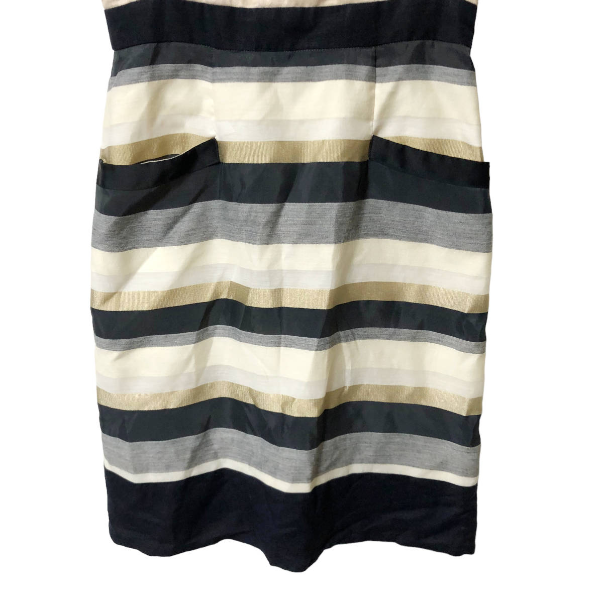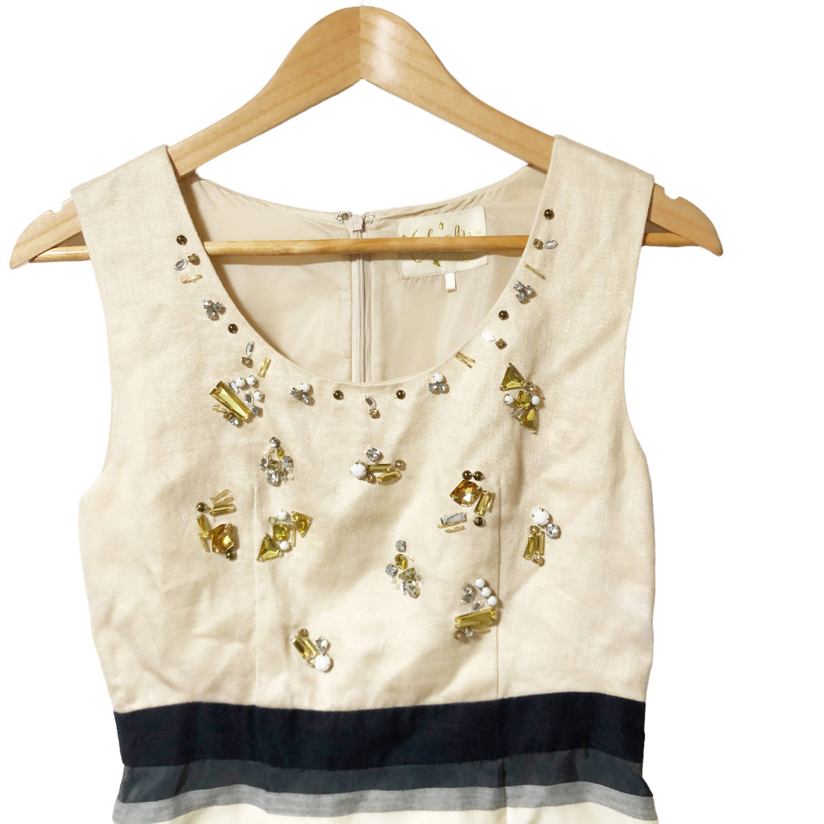 Chesty チェスティ ワンピース ビジュー 切替 ボーダー 1 ひざ丈 ノースリーブ リネン ベージュ 紺 レディース A6