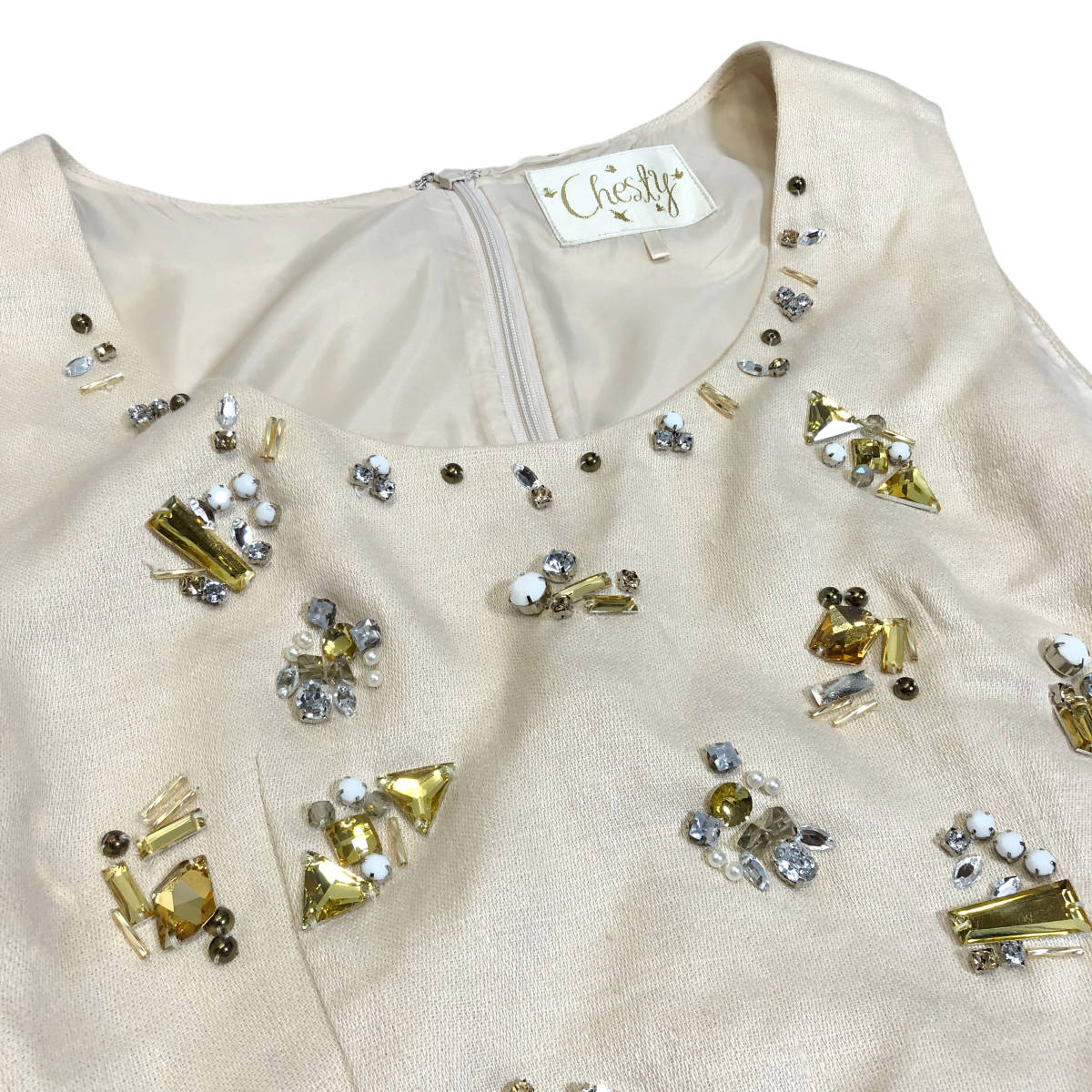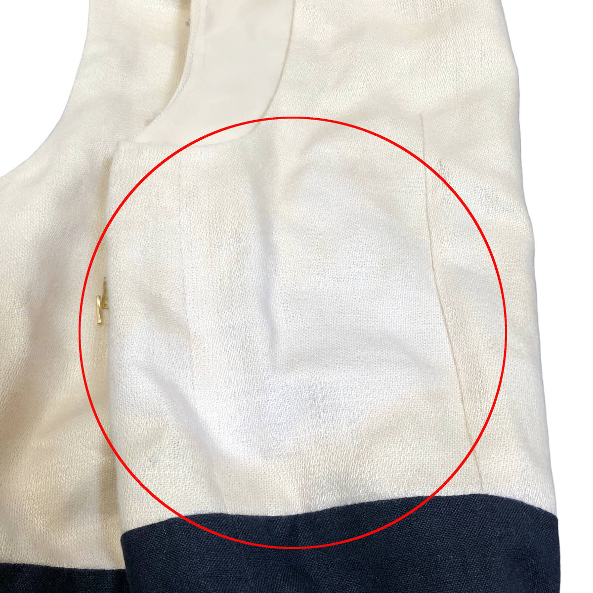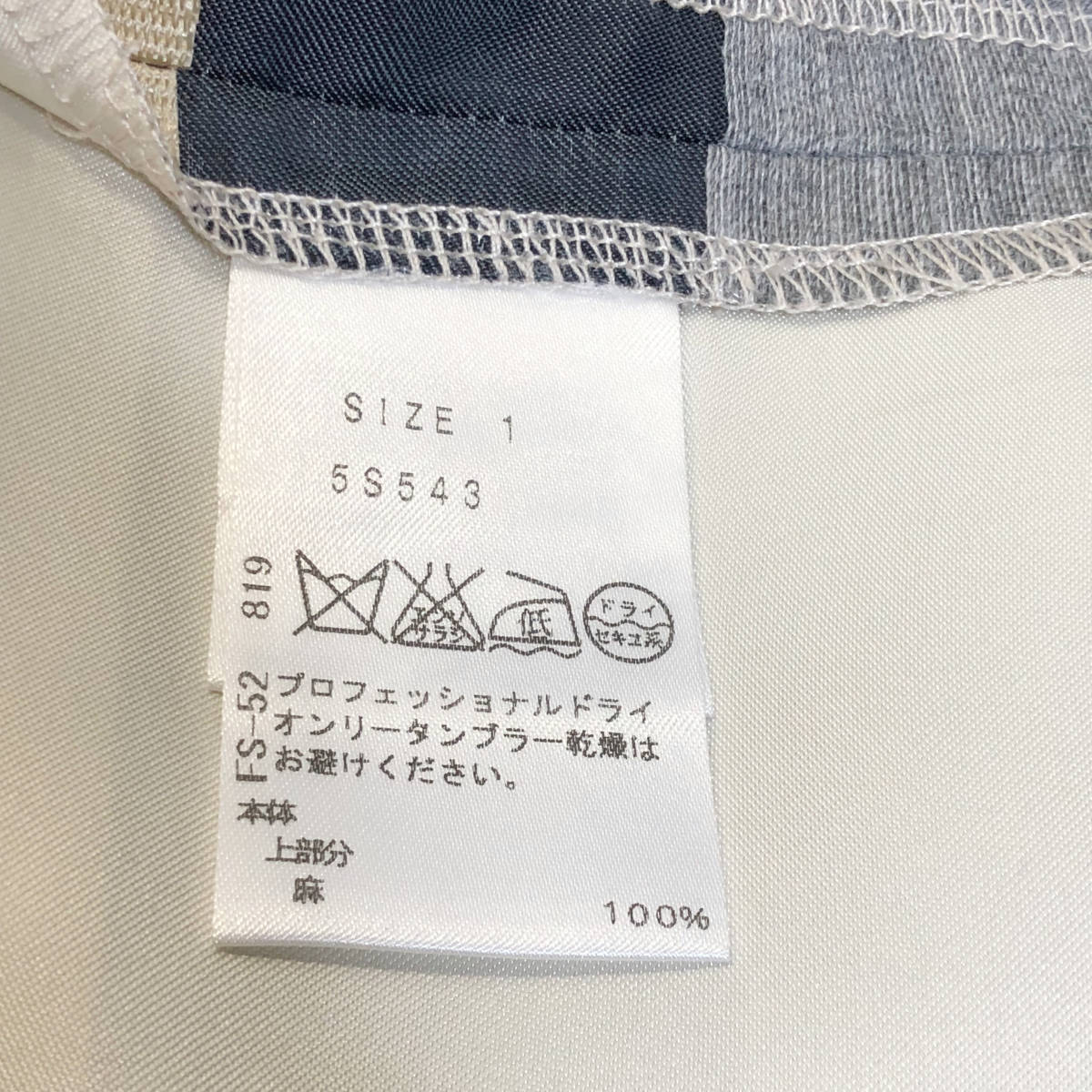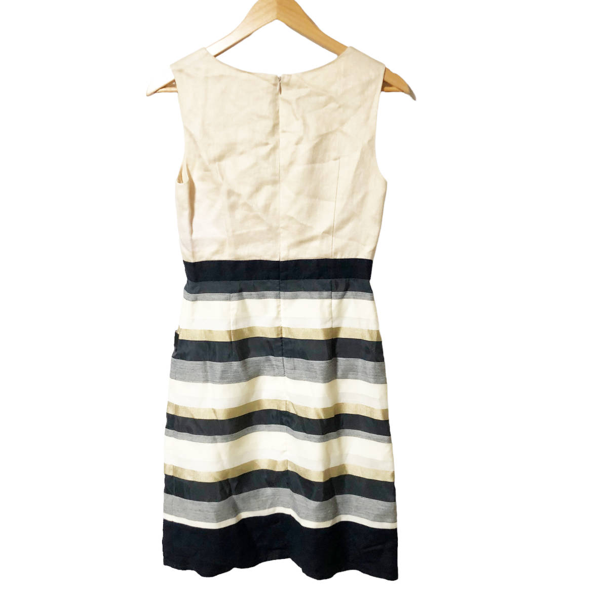 Chesty チェスティ ワンピース ビジュー 切替 ボーダー 1 ひざ丈 ノースリーブ リネン ベージュ 紺 レディース A6