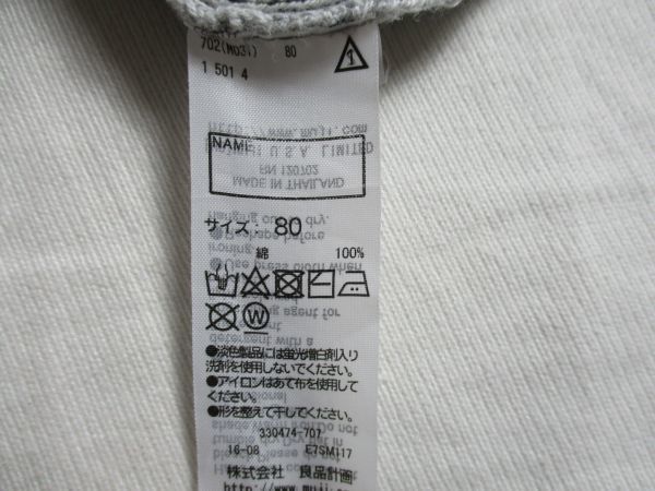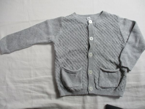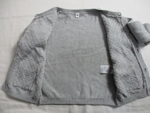 | BE708【(株)良品計画】長袖 カーデガン 男女児 淡黒 80 | |