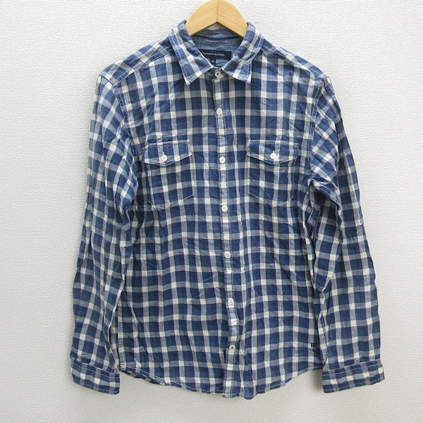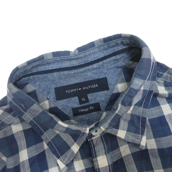 y■トミーヒルフィガー/TOMMY HILFIGER ヴィンテージフィット長袖シャツ■紺【メンズXL】MENS/110【中古】