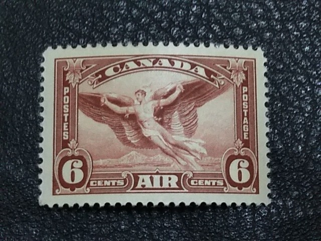 【よく見たら】 外国切手 カナダ 1935年 航空切手 6セント 天使? イカロス? CANADA 羽根 雪山 山脈 【イカロス君?】