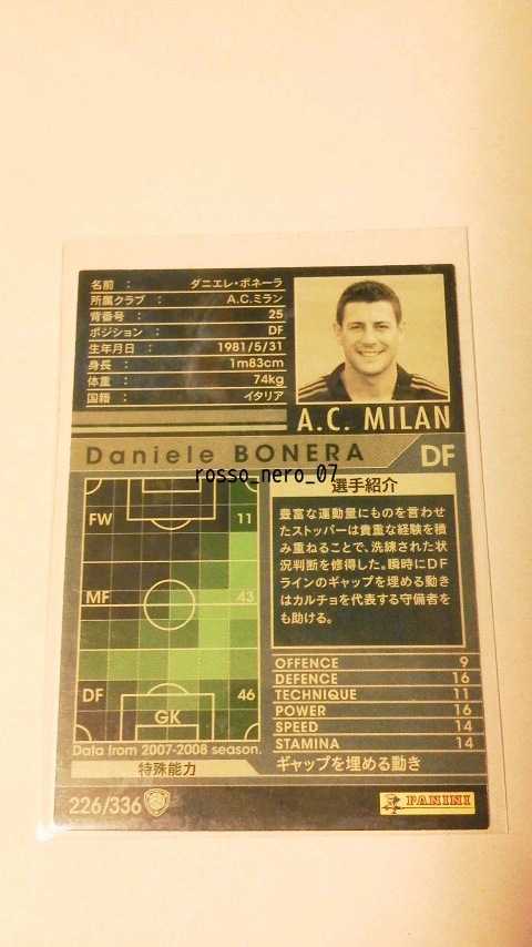 ☆WCCF2007-2008☆07-08☆226☆白☆ダニエレ・ボネーラ☆A.C.ミラン☆Daniele Bonera☆A.C. Milan☆