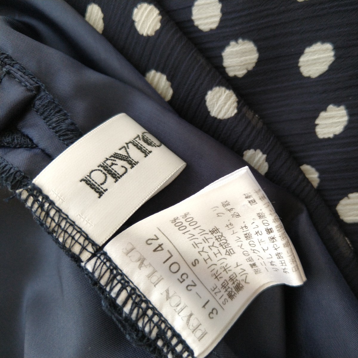PEYTON PLACE ペイトンプレイスの紺色のドットワンピース。