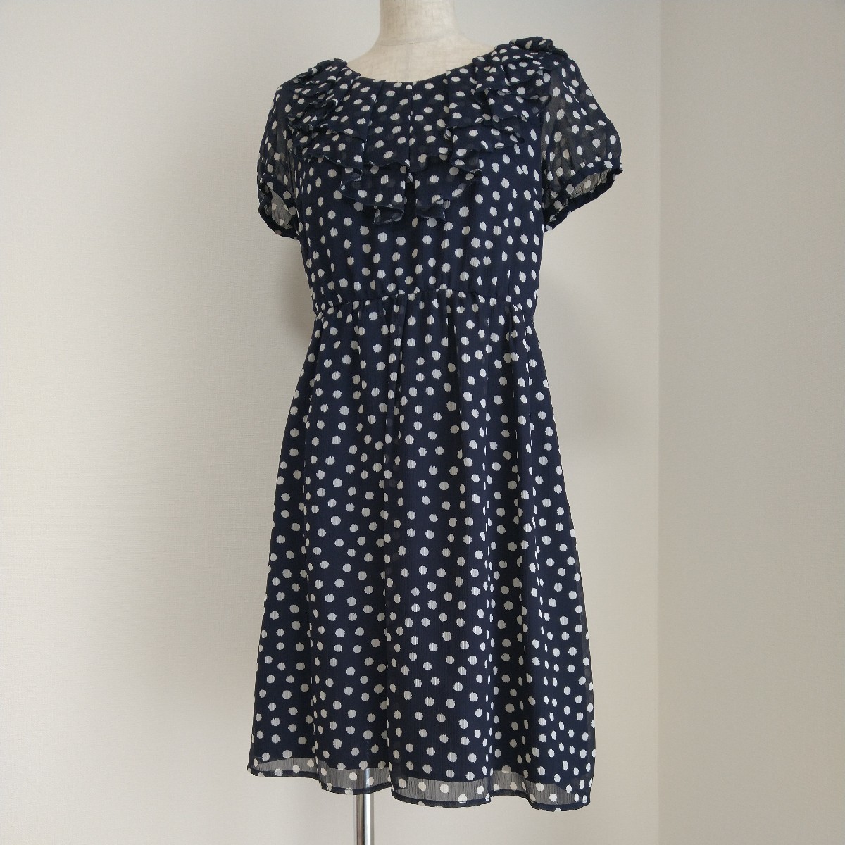 PEYTON PLACE 紺ドットワンピース S ネイビー 夏 水玉 ペイトンプレイス 涼しい フレア