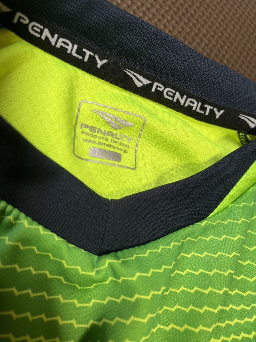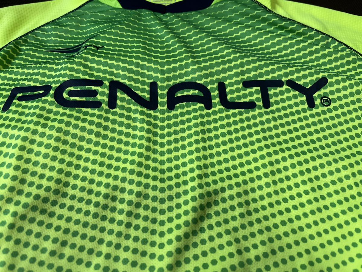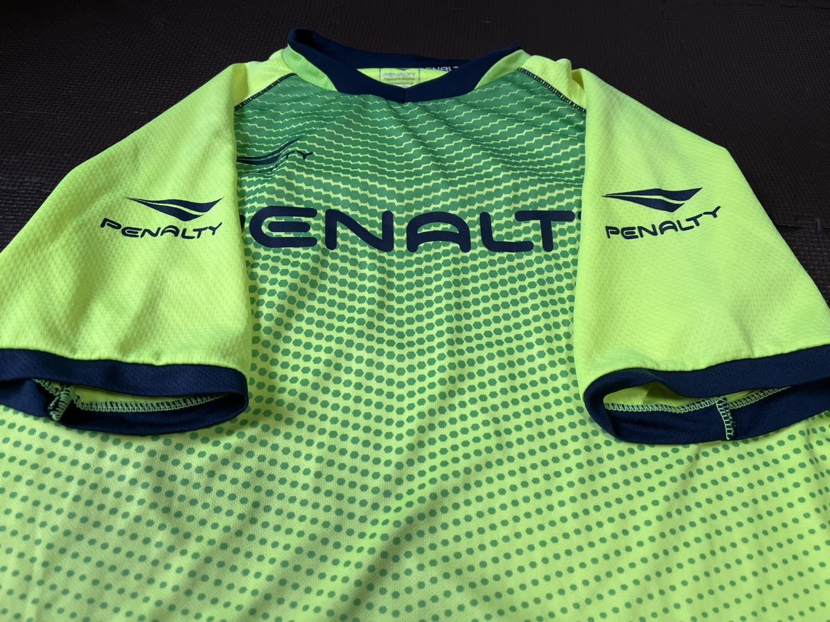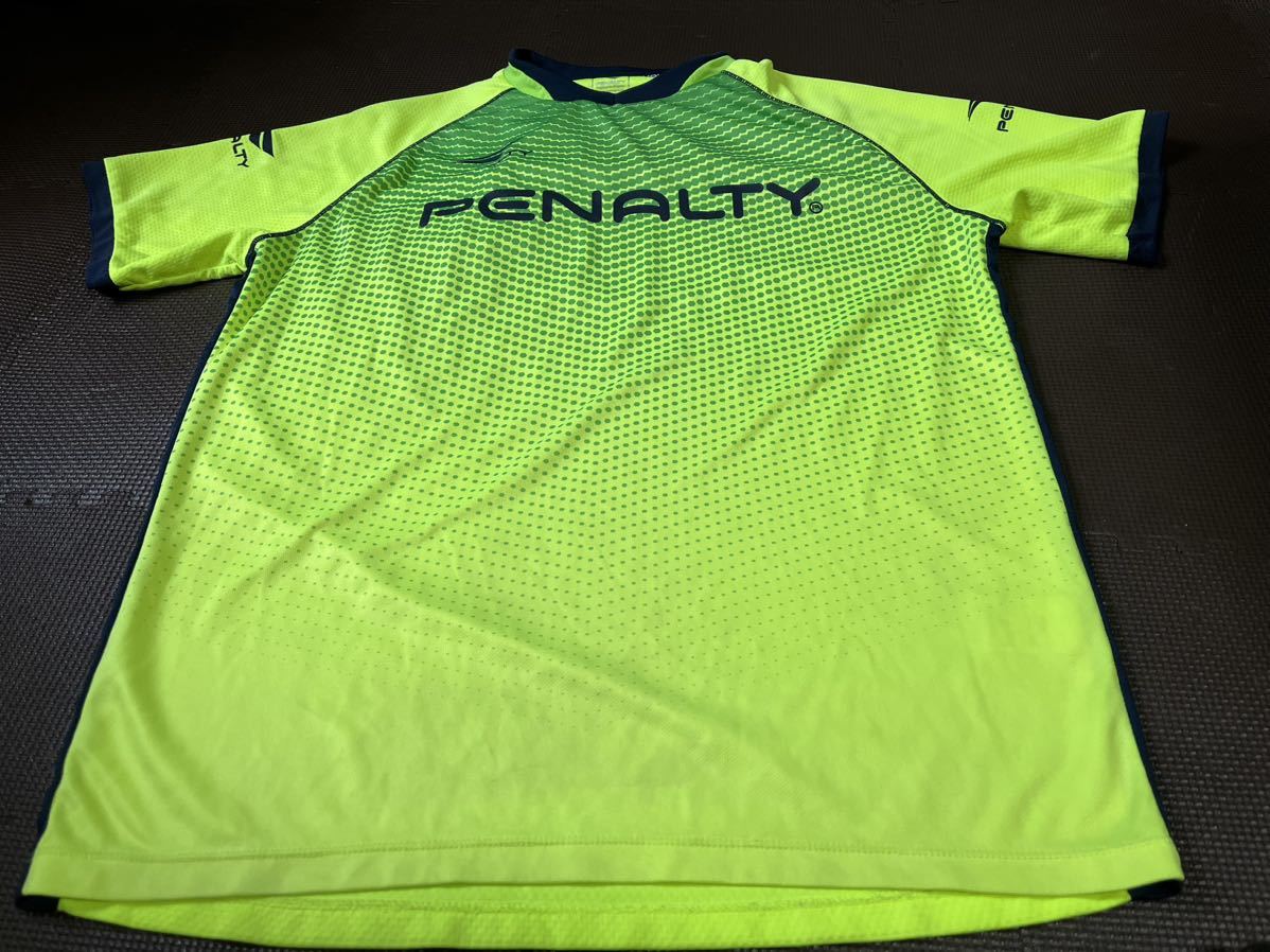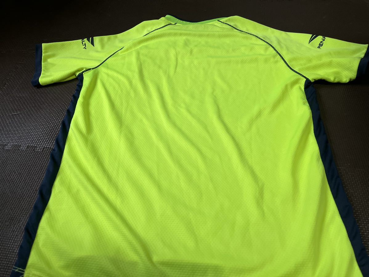 新品同様PENALTY蛍光色、グリーン、黒、ロゴ濃紺、半袖ストレッチトップス