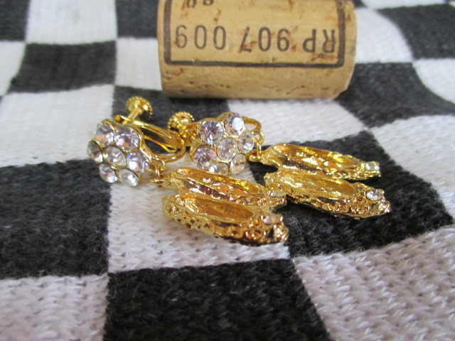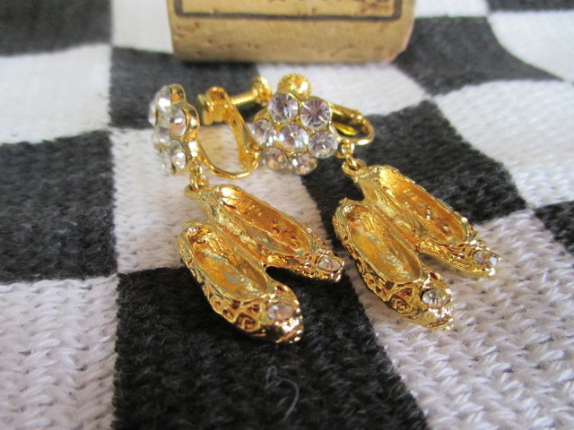 ★イヤリング。 ゴールドにダイヤストーンがきらきら可愛いです。フラットシューズ長さ1.8cm。新品美品