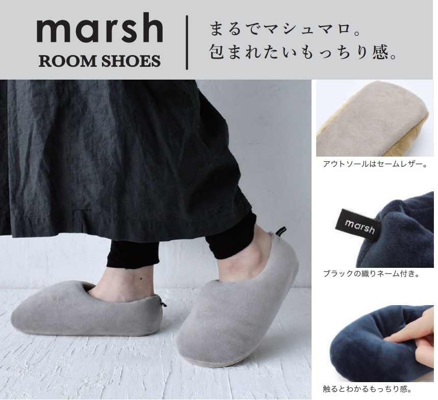 モチモチとしたマシュマロのような素材のルームシューズです。