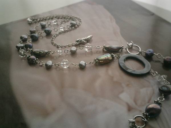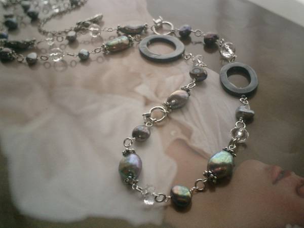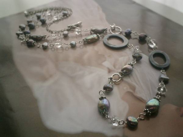 アートモダン・コレクション・・シリーズです♪神秘的な石を集めて・・水晶と淡水パールのネックレスです♪6ミリ、8ミリのランダムカット、8ミリのボタンカットの水晶に8ミリから17ミリ位までのバロック、ステック、オーバルなどデザイン違いの淡水パールにジルコニアのドールリングやシェルリングを合わせてシックにロマンチックしています♪モノトーン色でまとめて大人の表情です♪長さは全長105センチ位で調節自由です♪2連にされても素敵です♪♪お揃いのブレスレットも出品しています♪♪シンプルで飽きのこないいつまでも着けられるデザインを考えて作りました!ハンドメイドをご理解頂いてノークレーム、ノーリターンでお願いします