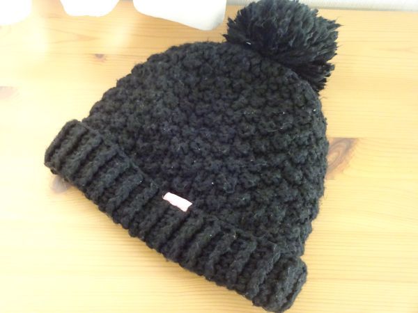 | 〃IGNIO〃レディース・ガールズ 黒色帽子 編み込みハット ポンポン付ニット帽 サイズ57cm〜59cm キャップ 帽子 | |||||||||||||||