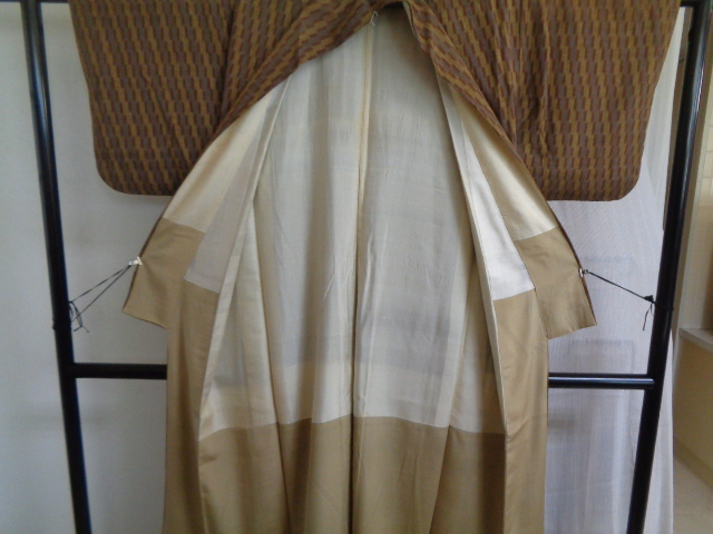 a545-80 結城紬 正絹 広衿 着丈146センチ 裄63センチ アンティーク