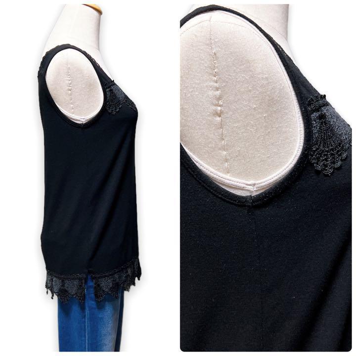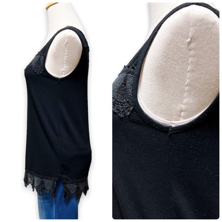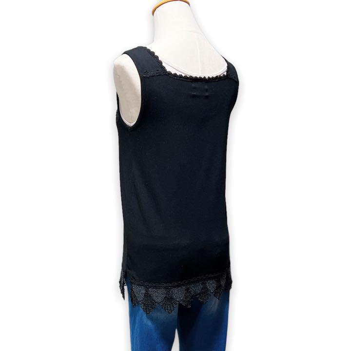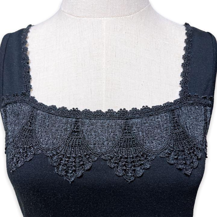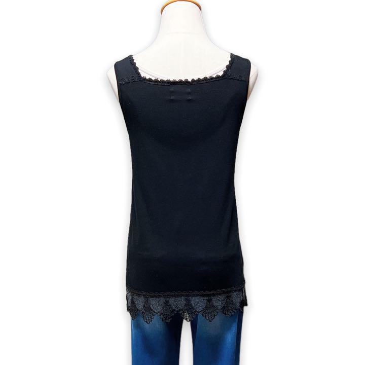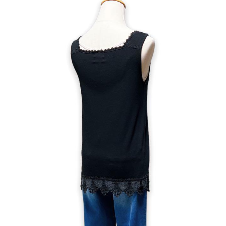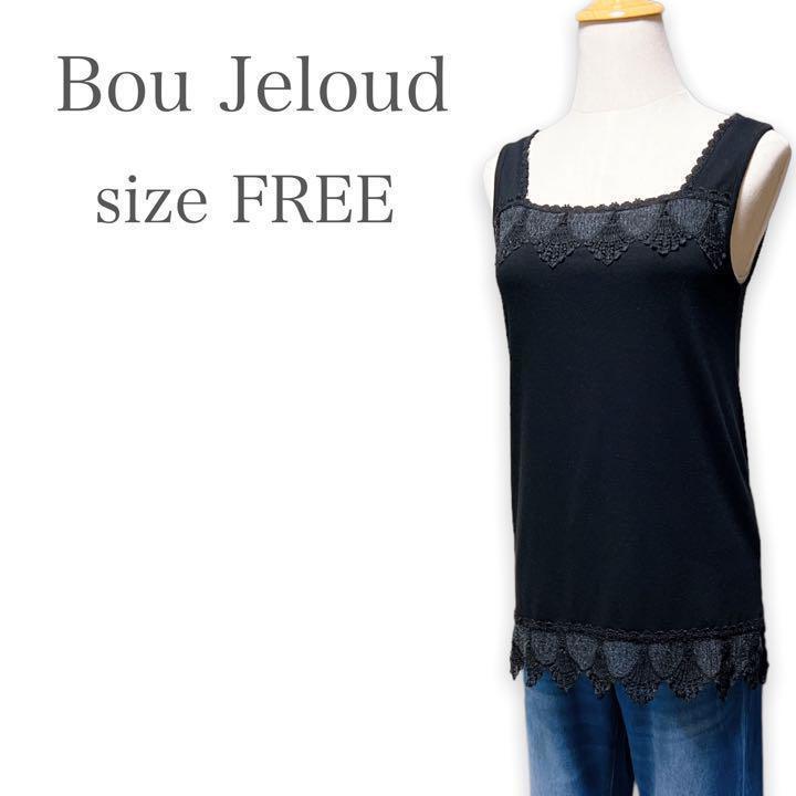 T252★大人カジュアル★Bou Jeloud ブージュルード スクエアネック レース タンクトップ インナー ブラック Fサイズ インナー 万能 上品