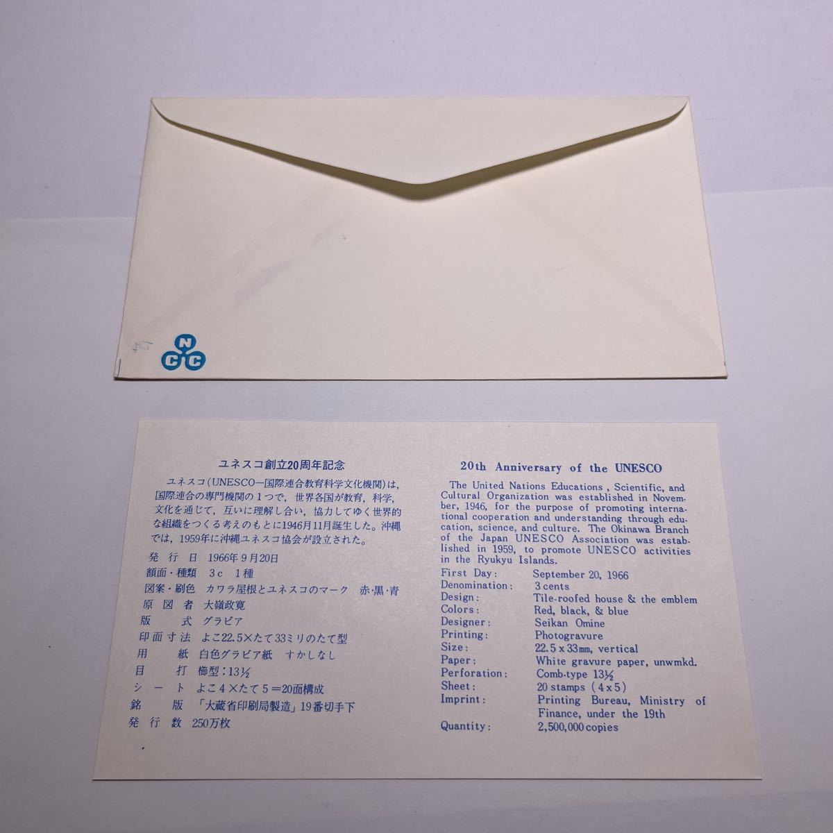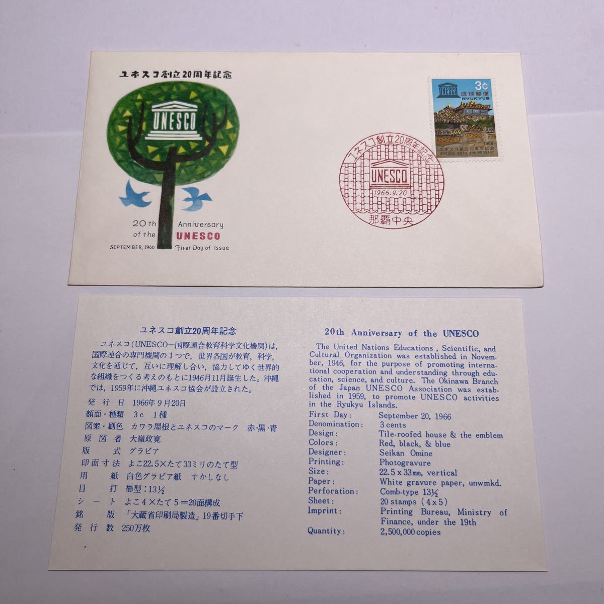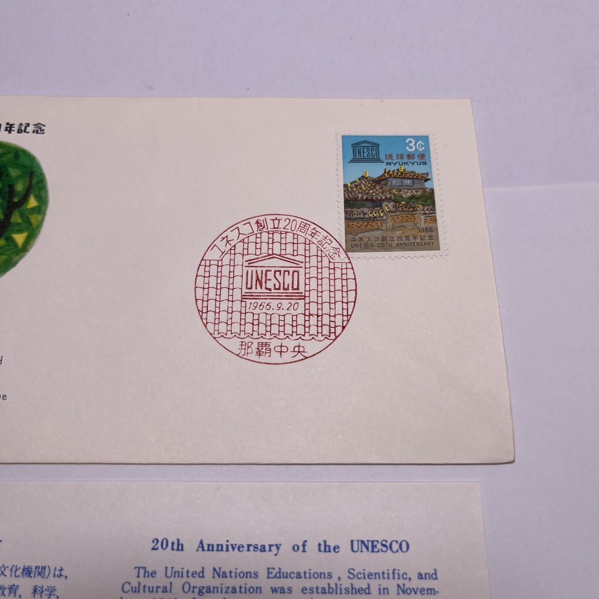 (o3) 1966年 ユネスコ創立20周年記念切手 琉球郵便 UNESCO 初日カバーFirst day Cover 那覇中央印 【送料84円】