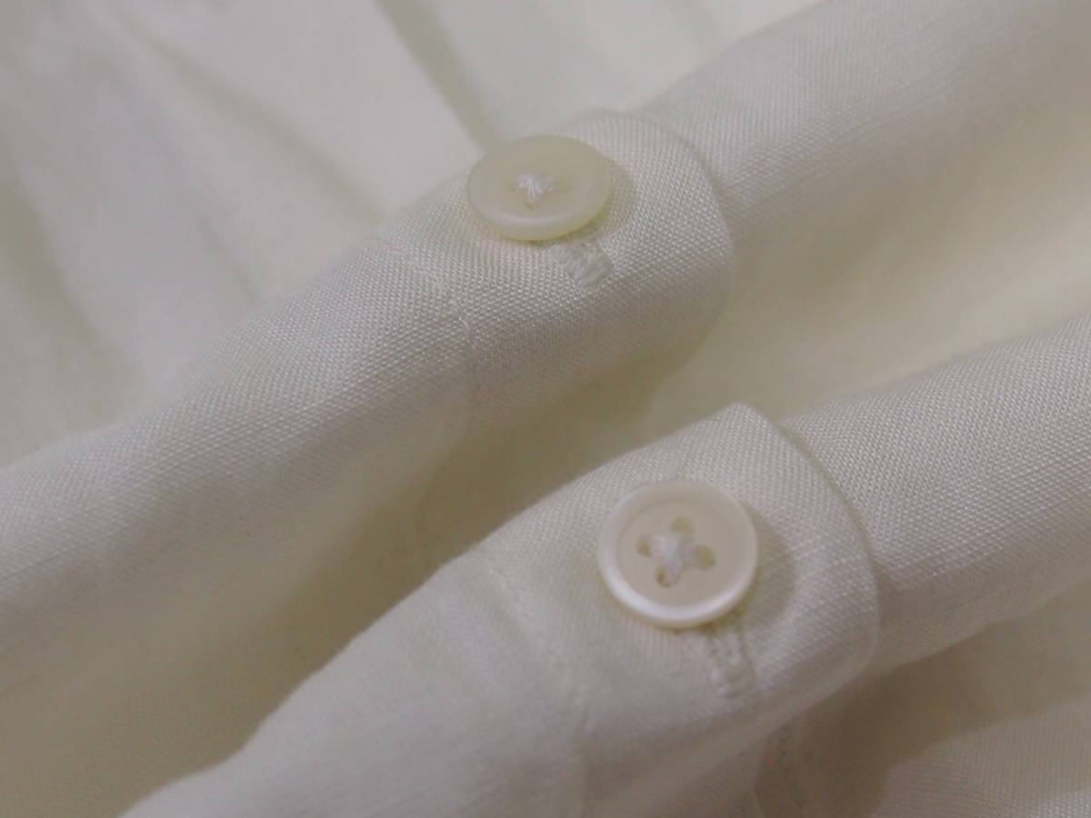 (商品状態・傷・汚れ・毛玉・変色・テカリ・糸出・伝線・補修・リメイク・欠品など) (Usedですが)気になる汚れや傷もなく、襟・袖もきれいです。 レーヨンと麻の混紡ですので、ドレープ性のある天然素材というかんじです。 色は生成色くらいです。 |