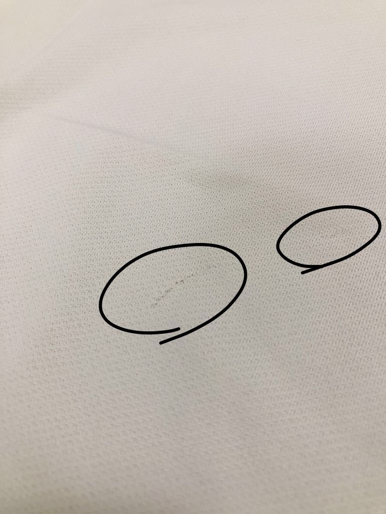 その他、商品の個体差が若干あること・ライトグレー1枚背中に引っかかった跡のような傷があります。
