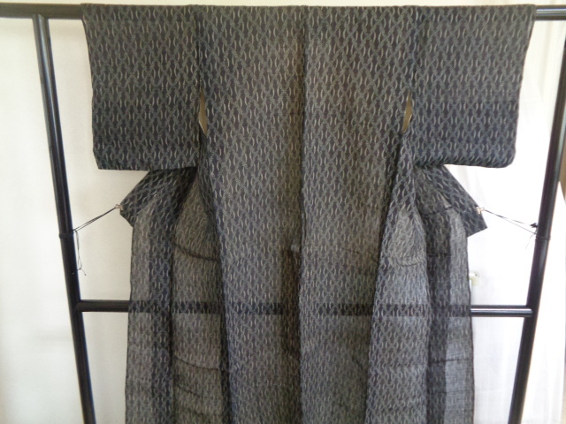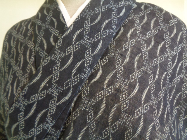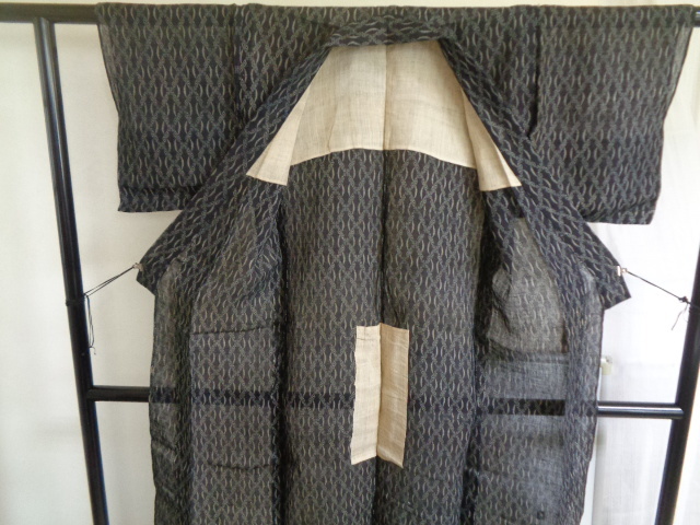 b559-80 アンティーク 麻 立涌幸菱格子織文 着丈135センチ 裄57センチ