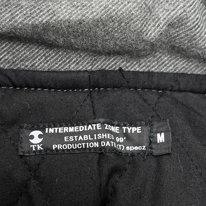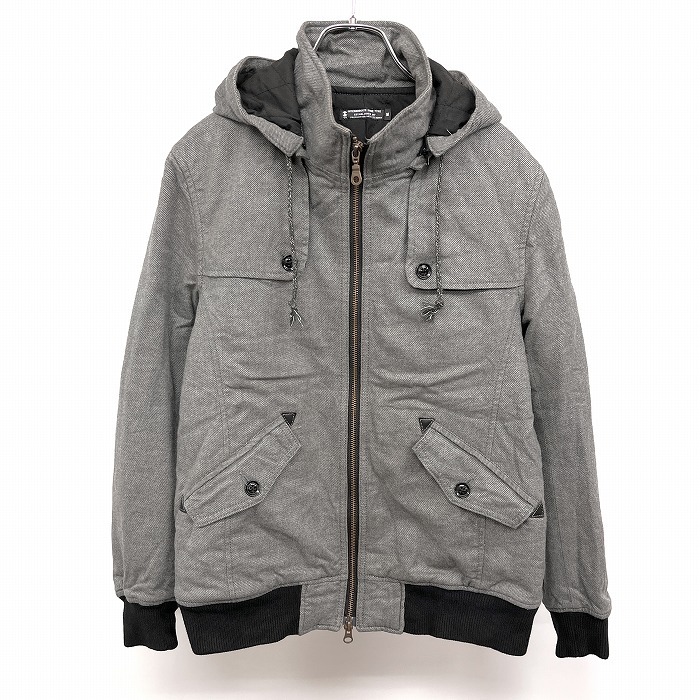 商品タイトル | TK ティーケー M メンズ(レディース?) 若干薄手 中綿 パデッドジャケット ブルゾン フード脱着可 ダブルジップ 長袖 綿100% グレー系 |