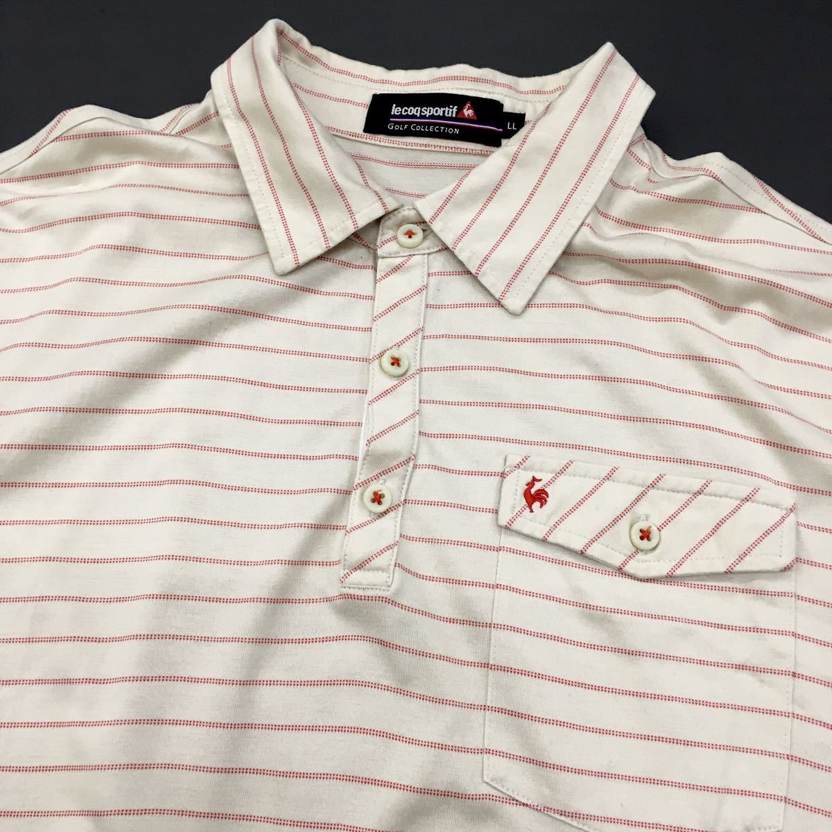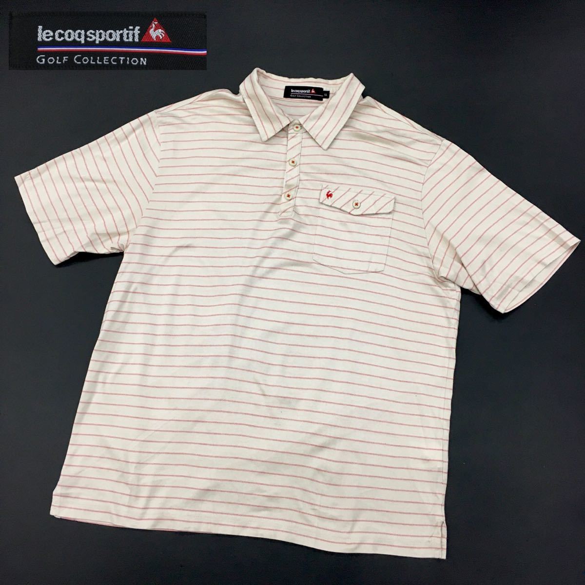 | lecoqsportif GOLFCOLLECTION ルコックスポルティフ ゴルフコレクション スポーツウェア 半袖ポロシャツ ボーダー 刺繍ロゴ メンズ サイズLL デサント | ||||||||||||||||||