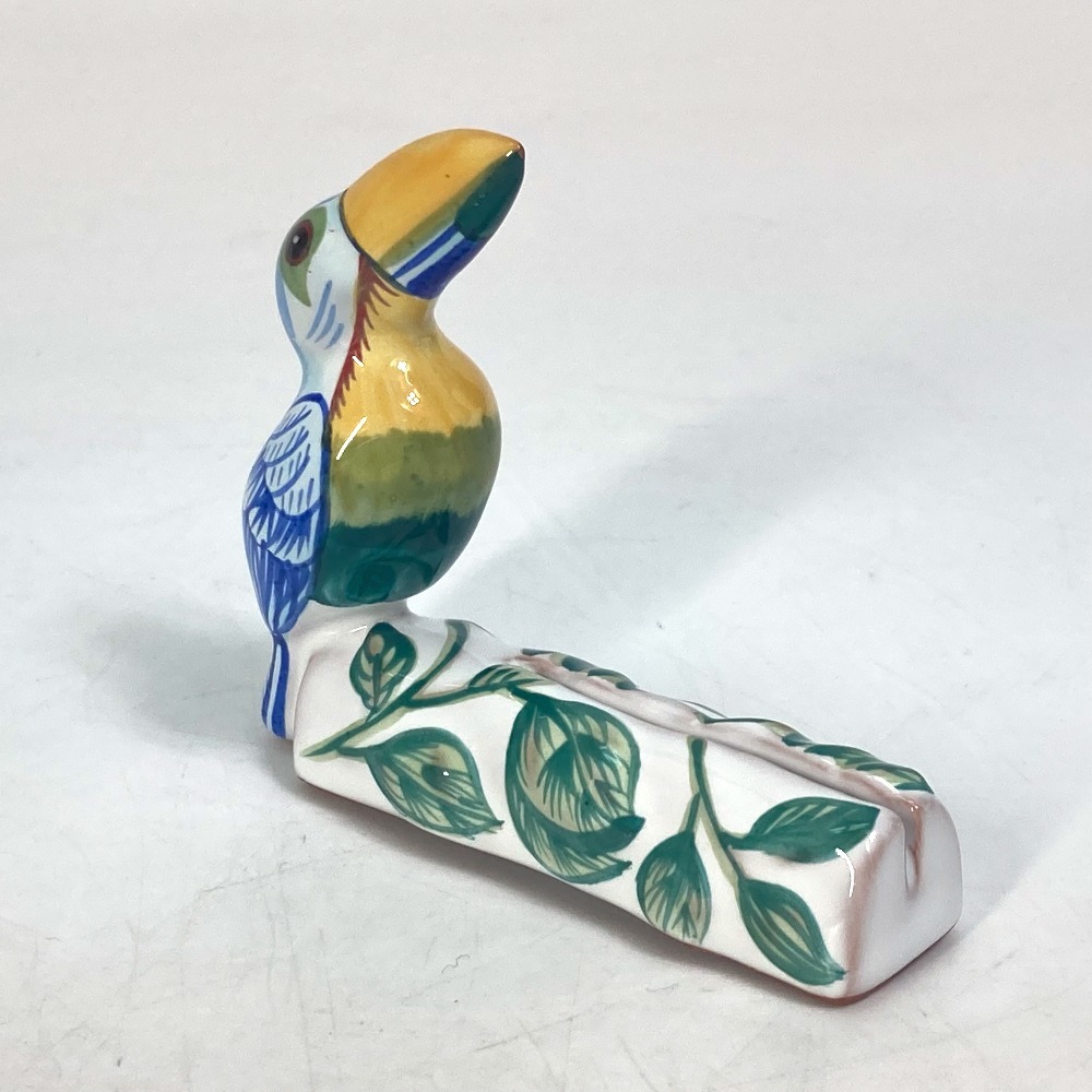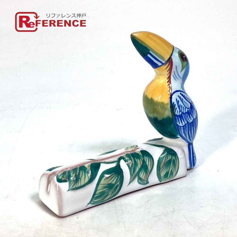 HERMES エルメス インテリア オブジェ 鳥 カードスタンド 雑貨 陶器 グリーン レディース【中古】未使用