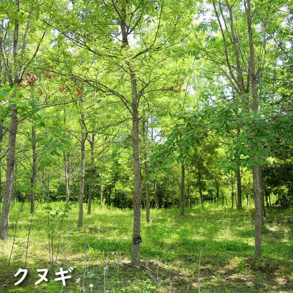 綺麗な緑が特徴です。本州から九州の山地に自生しています。葉は楕円形で鋸歯があります。花は黄色で長く垂れるようにさきます。どんぐりがなります。種はコナラが細長いのに対してクヌギは丸に近い形をしています。自然樹形がきれいです。おもに森林用や緑化木用に使われます。