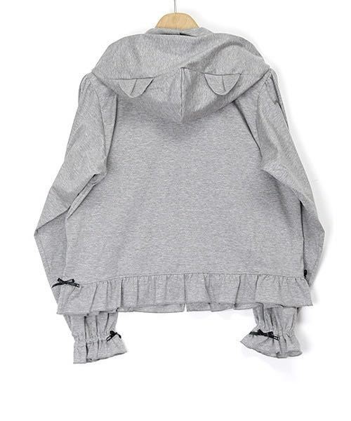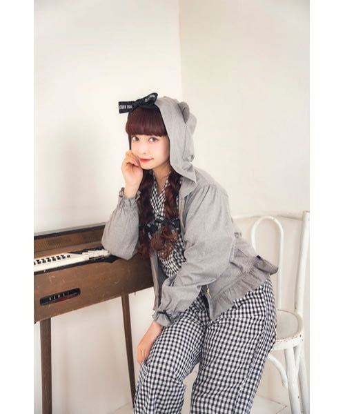 今回は、おうち時間も可愛く楽しもう♪ということでROOM WEARも登場しています!おうちでもお出かけにも、さらっと羽織って可愛いパーカー。高級綿のスーピマコットンを使った肌ざわりのよいスムース素材は面構えもよくキレイめに着られます。薄手なのでこれから夏にかけて日よけ防止や冷房対策にも使えるパーカーです。フードには可愛い耳付き。裾には軽くフリル、袖口にはミニロゴリボンをそれぞれ添えて可愛いポイントを。左胸にはロゴのワンポイント刺繍入り。少し丈を短めにしてチュニックやワンピースに合わせてもまとまるように仕上げています。
