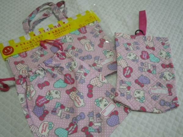 【新品】PINK LIPS★入園 入学 キルティング レッスンバッグ& シューズケース + お着替え入れ 巾着 3点セット お名前ネーム付き