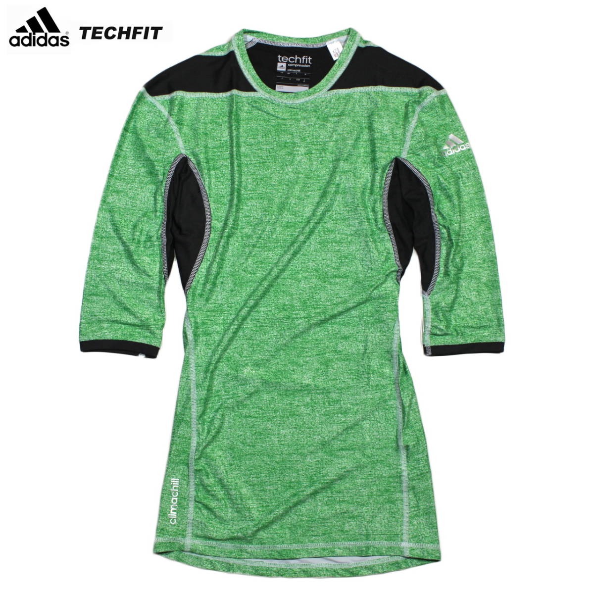 【新品】アディダス テックフィット チル 7分袖 Tシャツ【73:緑】S ランニング マラソン トレーニング ゴルフ 陸上 adidas TECHFIT