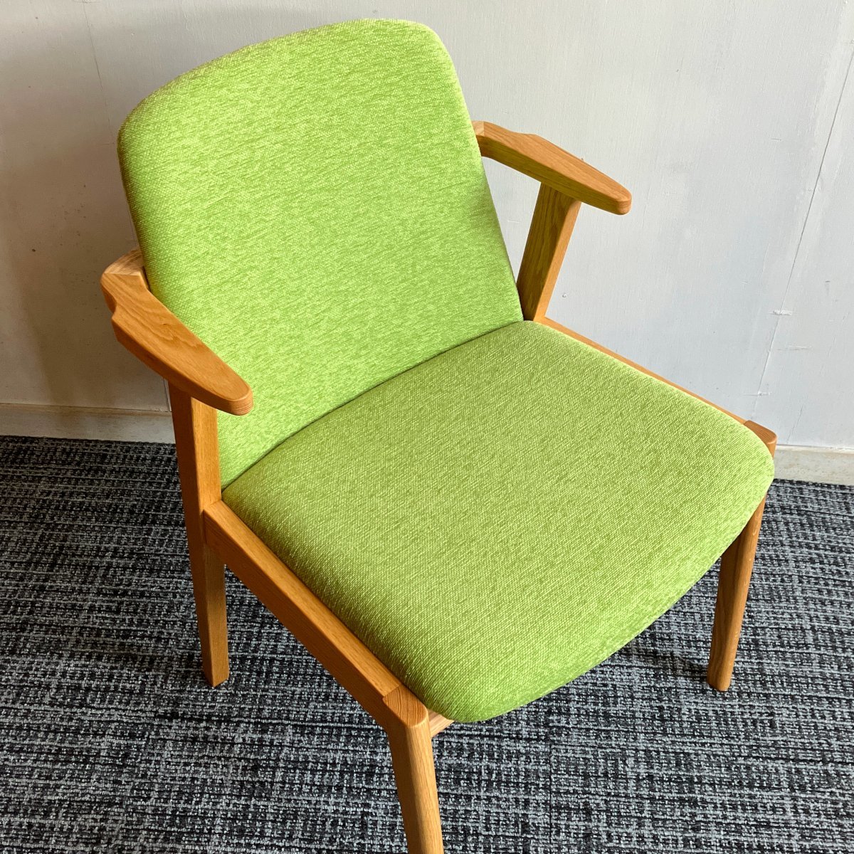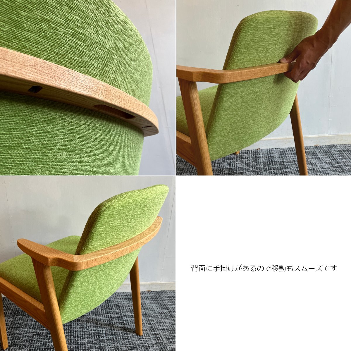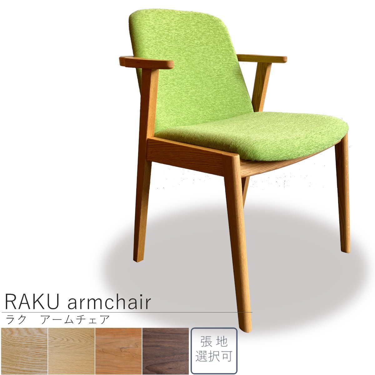 ※写真は「フレーム樹種:レッドオーク材、張地:ランクA(アネルカ イエローグリーン)」の見本品です(天然木製品につき木目には個体差がございます)