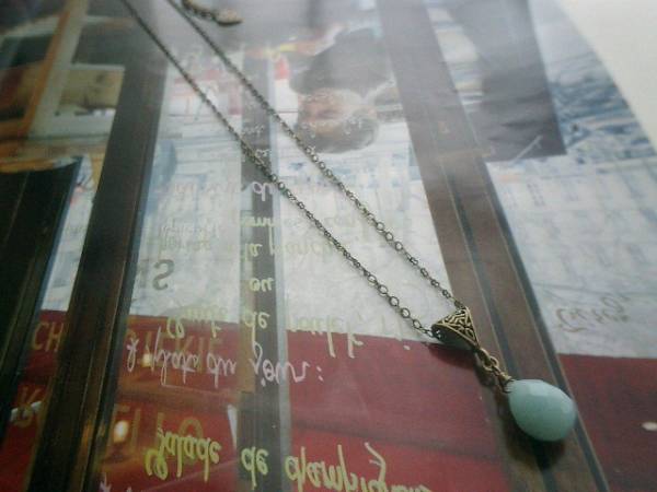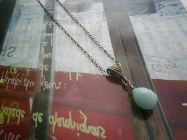 ロマンチック見本帳・・シリーズです♪水色エレガンス・・可憐なアマゾナイトのネックレスです♪13×18ミリのドロップカットのアマゾナイトにシックな座金と華奢なチェーンを合わせました♪長さは70センチ+アジャスター13センチで最長83センチ位です♪♪お揃いのネックレスやブレスレットも出品しています♪シンプルで飽きのこないいつまでも着けられるデザインを考えて作りました!ハンドメイドをご理解頂いてノークレーム、ノーリターンでお願いします
