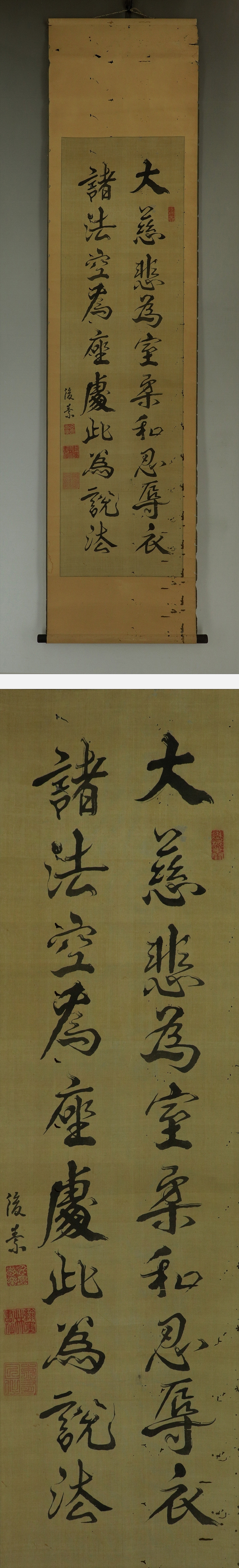 | №2303105 希少【真作】大塩平八郎(後素)【二行書】◆絹本◆合箱◆掛軸 | |