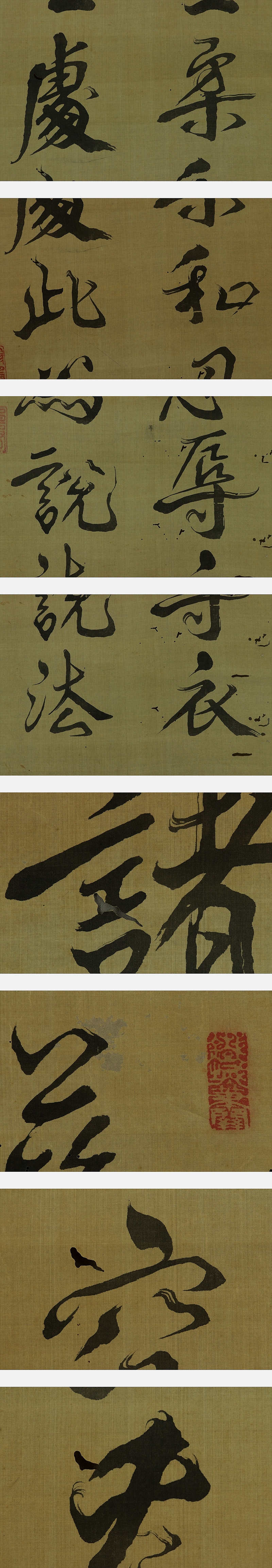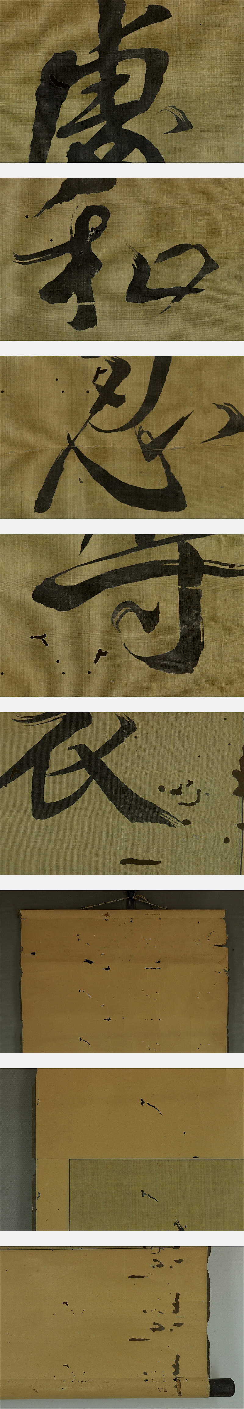 大塩平八郎 おおしおへいはちろう (1793~1837) 江戸後期の陽明学者。 阿波の人。大坂の生まれとも。名は後素。号は中斎。 大坂町奉行所与力を辞職し、私塾 洗心洞で子弟の教育にあたった。 天保7年(1836)の飢饉に際して奉行所に救済を請うたが容れられず、蔵書を売って窮民を救った。 翌8年、幕政を批判して大坂で兵を挙げたが、敗れて自殺。 本紙は、染み、汚れ、強めの折れ、皺、虫食い、擦れ、生地の剝がれがあります。 表装は、染み、汚れ、折れ、皺、虫食い、破れ、ほつれ、剝がれ、箱に破損があります。 【サイズ】 作品 横約35cm×縦約128cm 表装 横約43cm×縦約181cm |