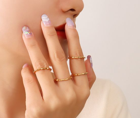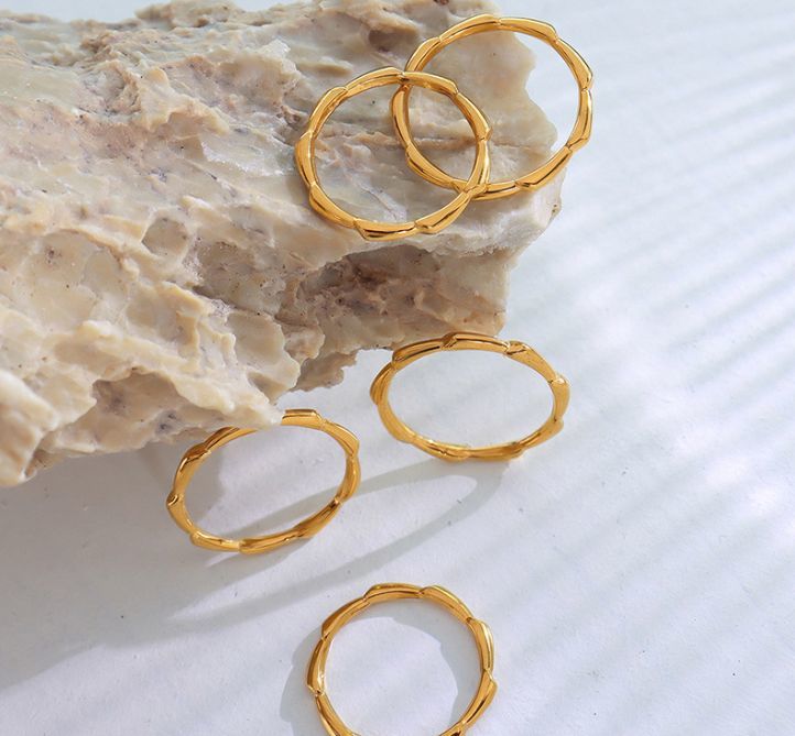 デザイン リング ゴールド 16.5号 チタン シンプル レトロ 細い 華奢 おしゃれ 金 K18GP 18金 18kgp 指輪 17号