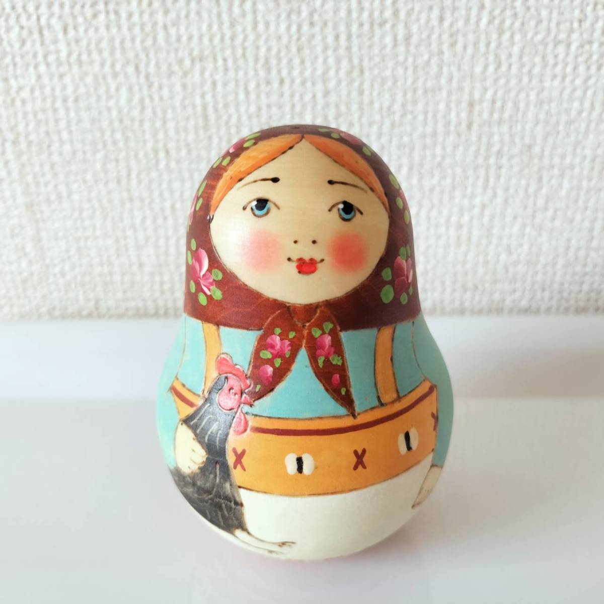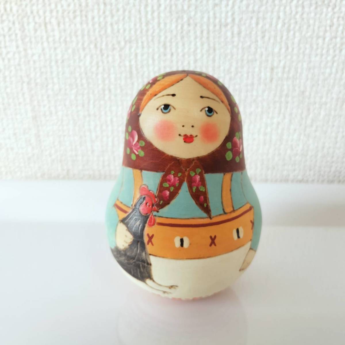 【LYH043】北欧ロシア雑貨 リューバ作の起き上がりこぼし 農村