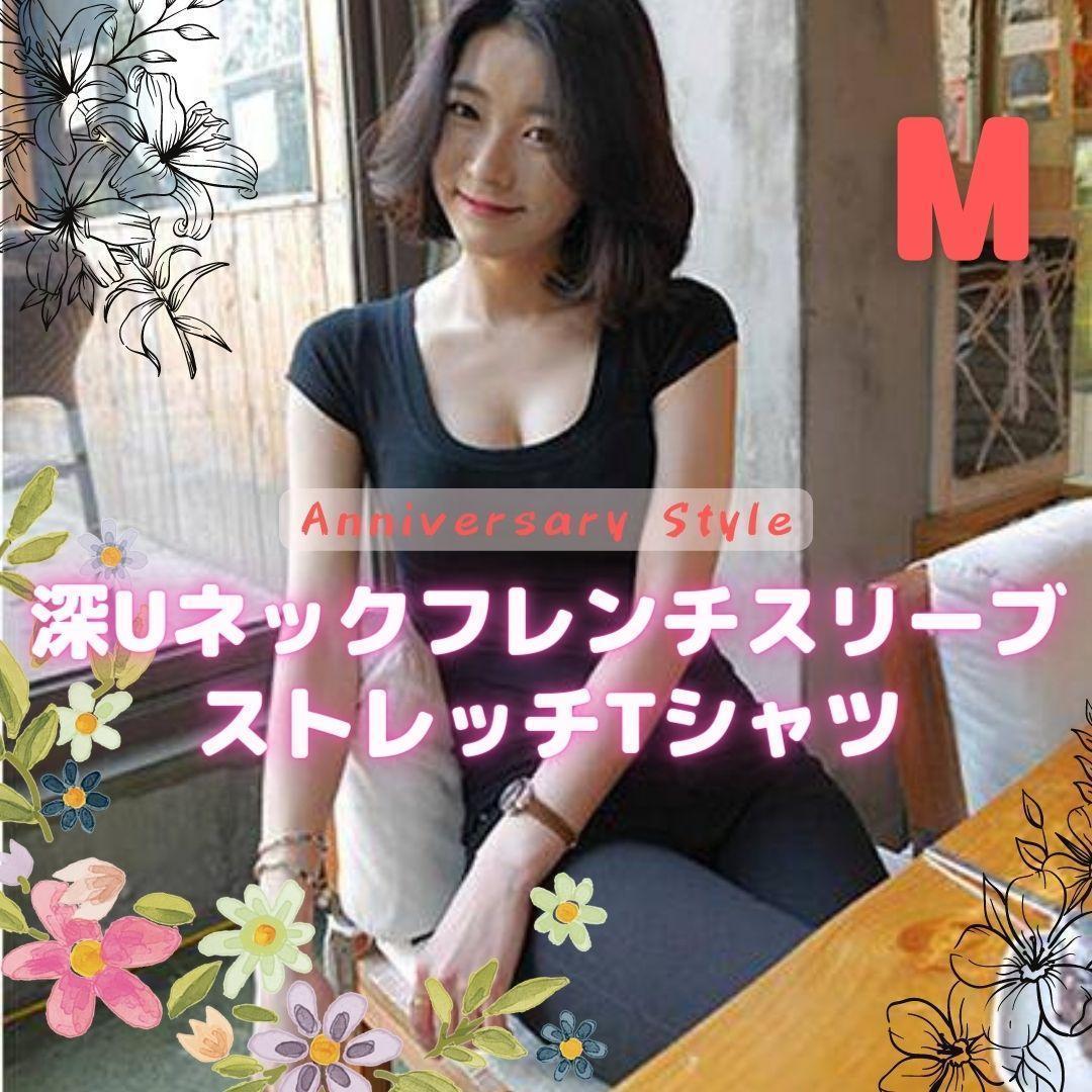 タグなし Tシャツ 黒 M 深Uネック トップス 新品 即納 半袖 l1867 Uネック ブラック レディース