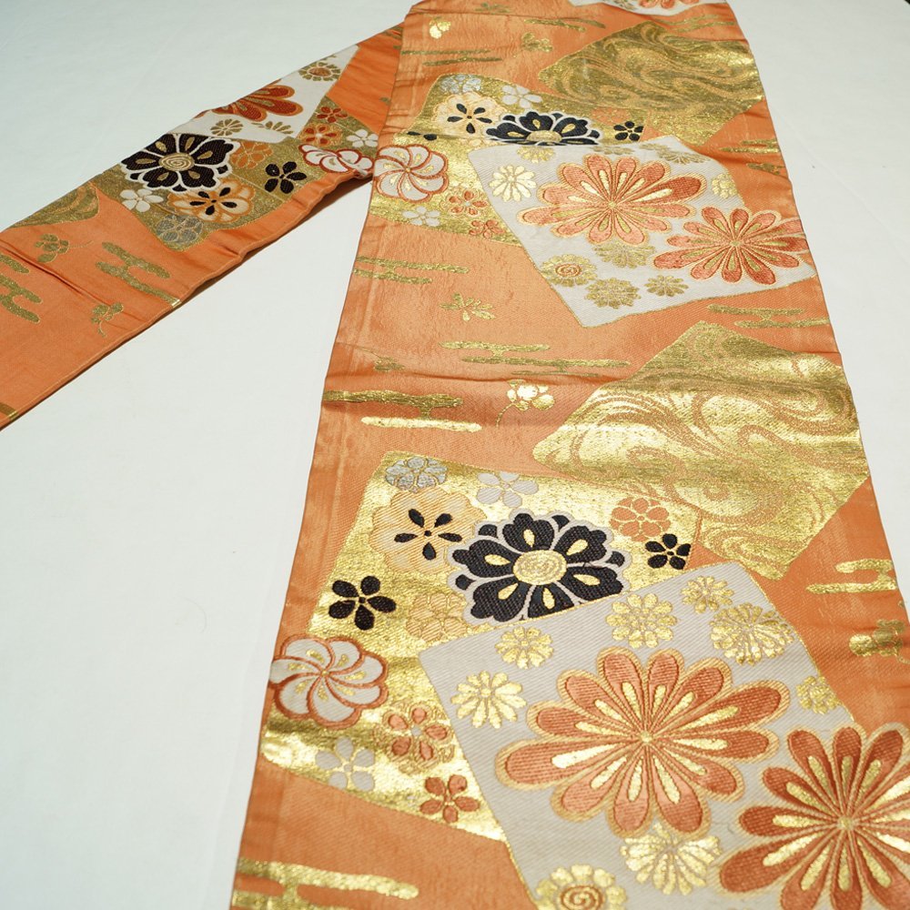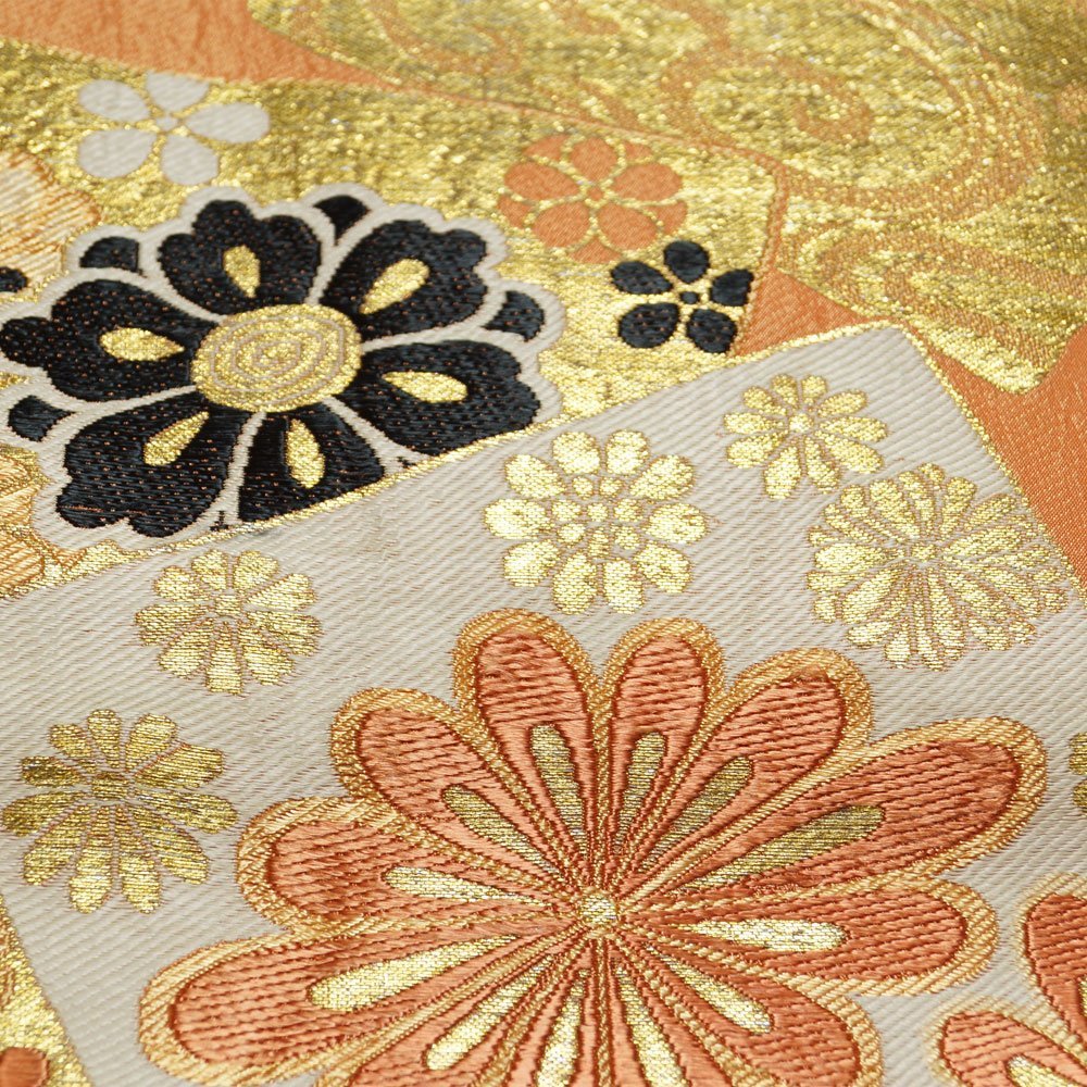 | 商品 説明 | 深支子色系の地に色紙に流水や菊菱などの模様が織られたアンティーク名古屋帯です。 |