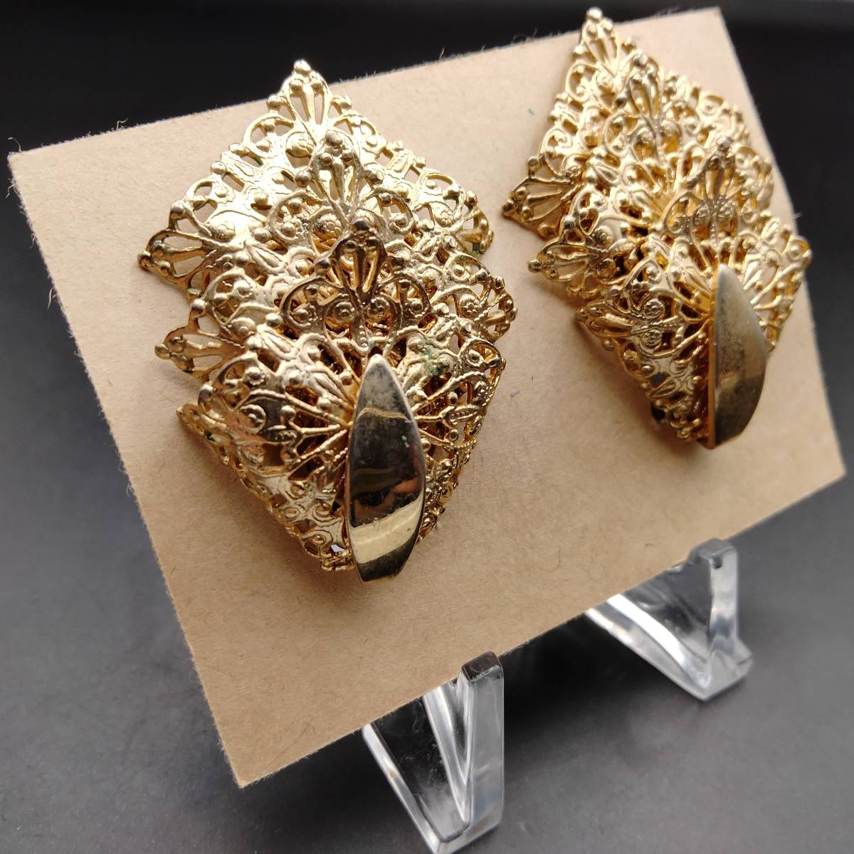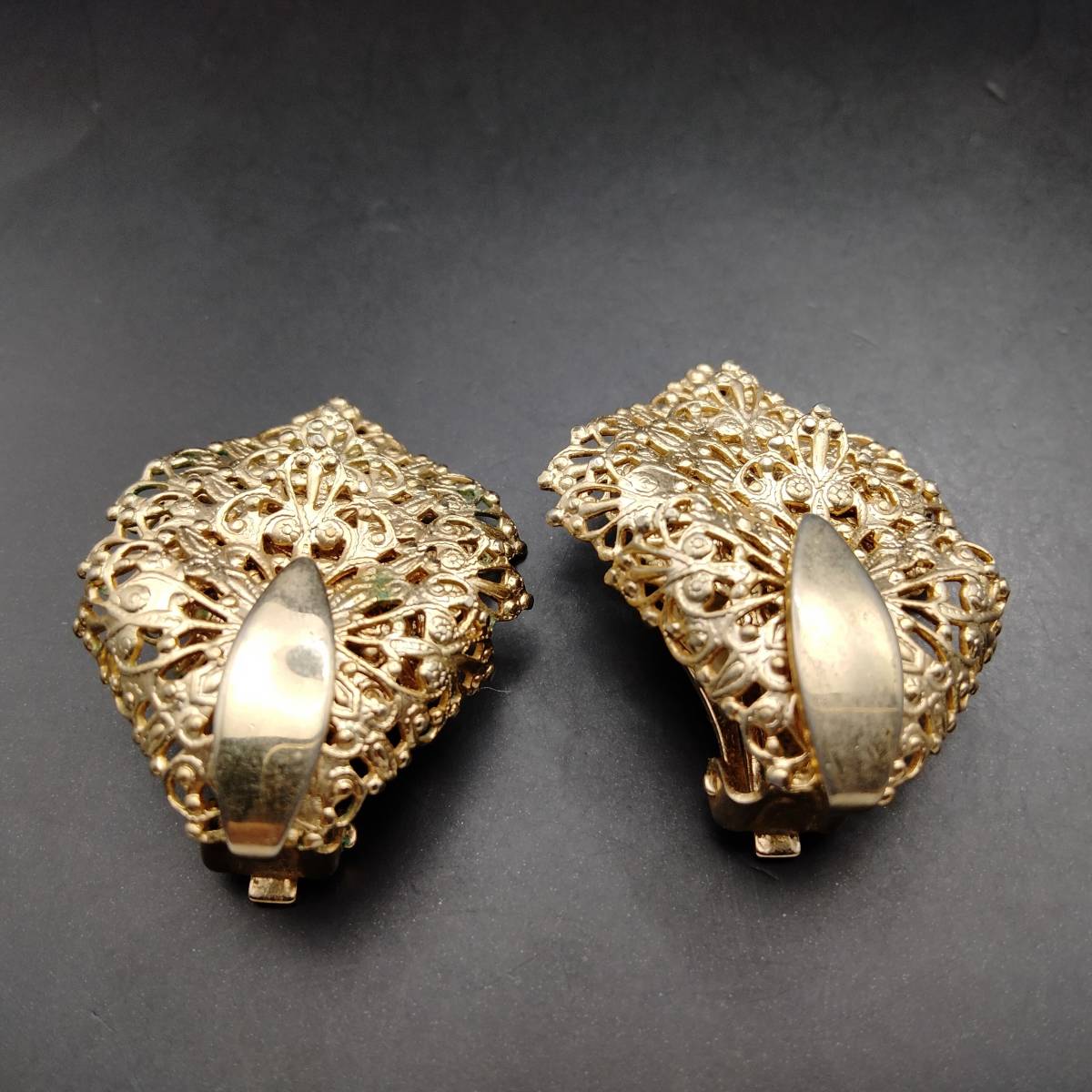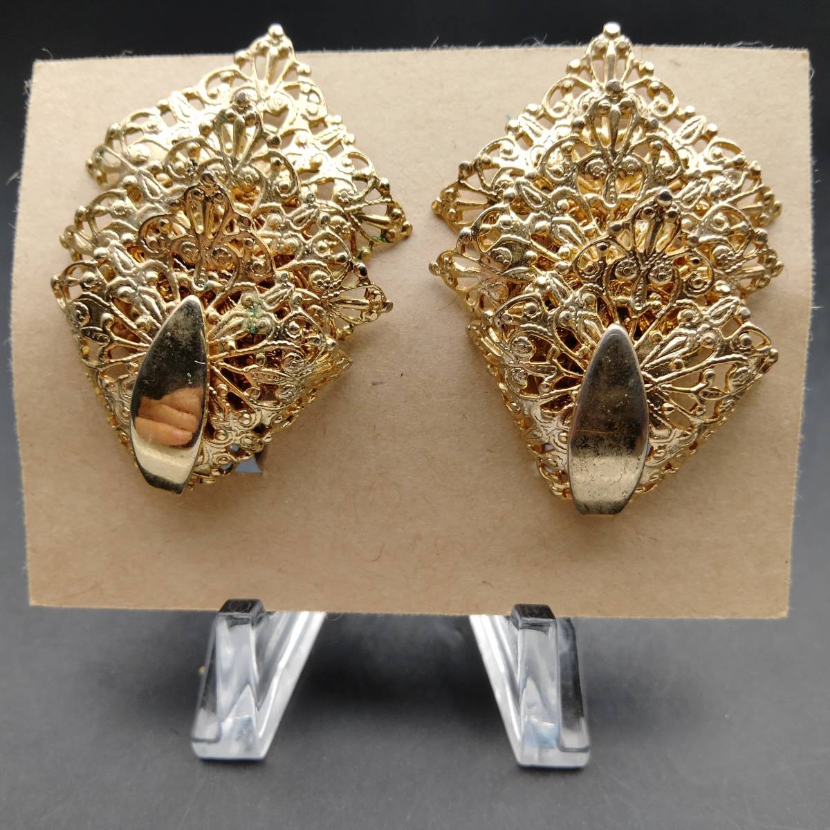 SARAH COV オープンワーク クラシック ゴールドトーン ビンテージ ピアス イヤリング 昭和レトロ コスチューム ジュエリー 輸入 7S-O