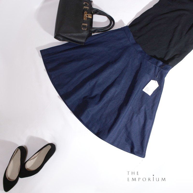 未使用 ジ・エンポリアム THE EMPORIUM 株) ワールド ■ 艶 Aライン ジャージ― フレアスカート 膝下丈 L 11号 ネイビー 紺 シンプル